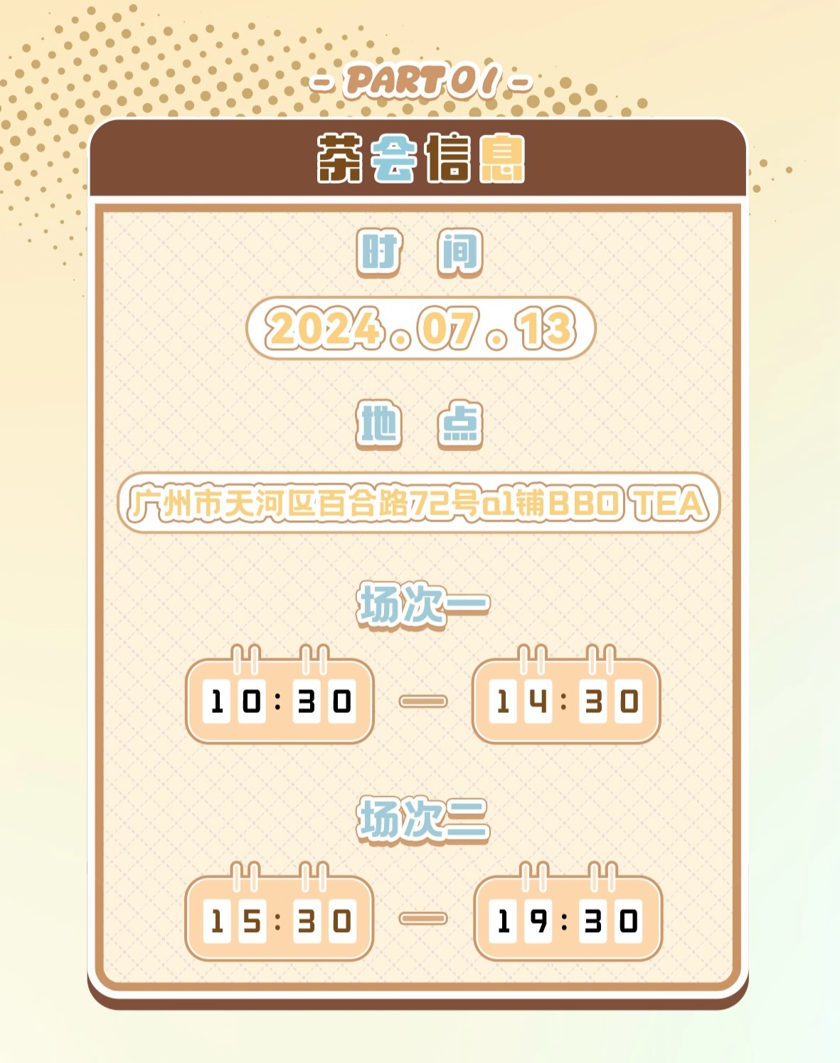 场馆名称: 广州市天河区百合路72号A1铺BBO TEA