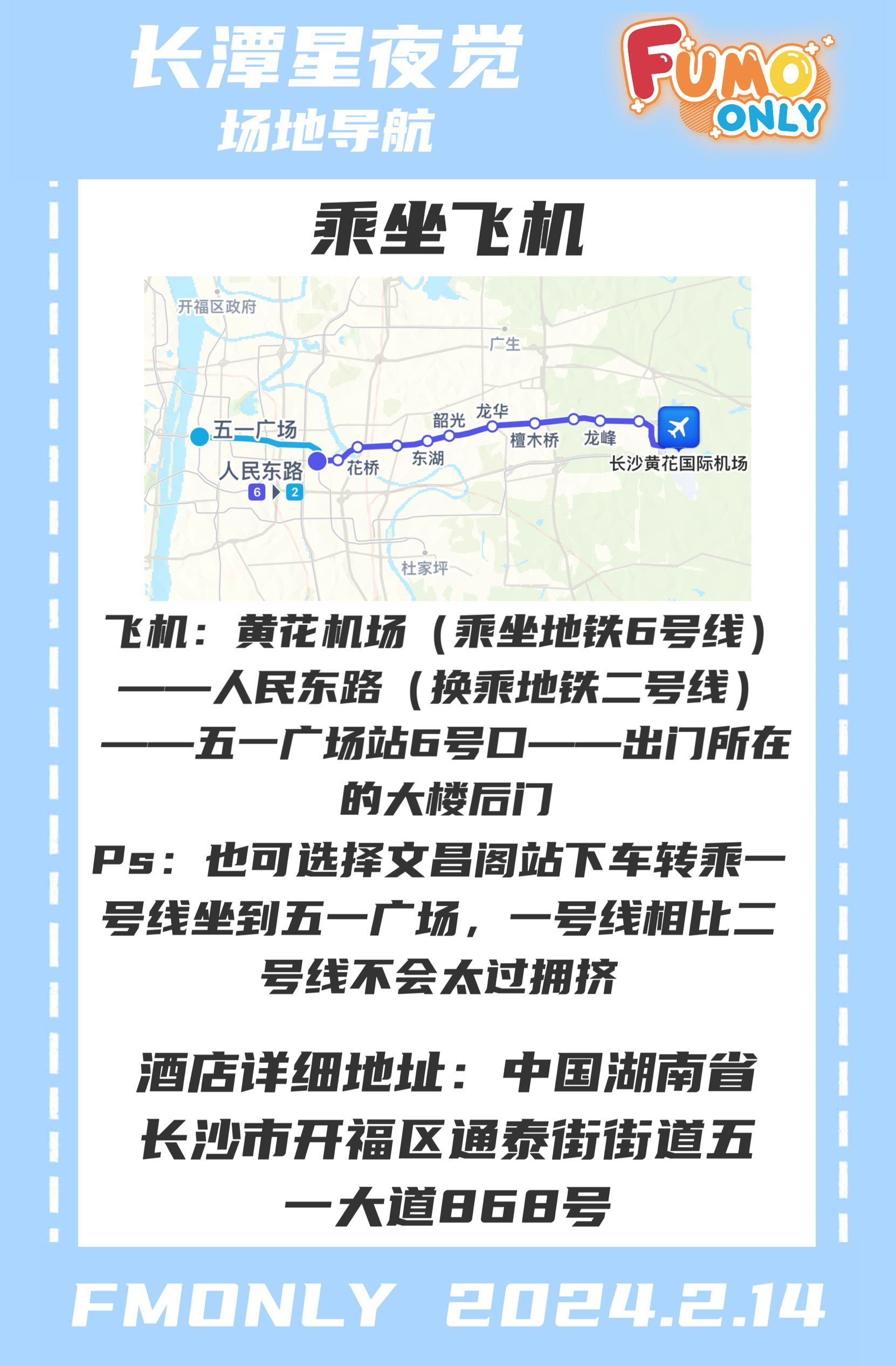 本次活动时间为2月14日,活动地点是湖南省长沙市开福区通泰街五一大道868号长沙慕弈H酒店