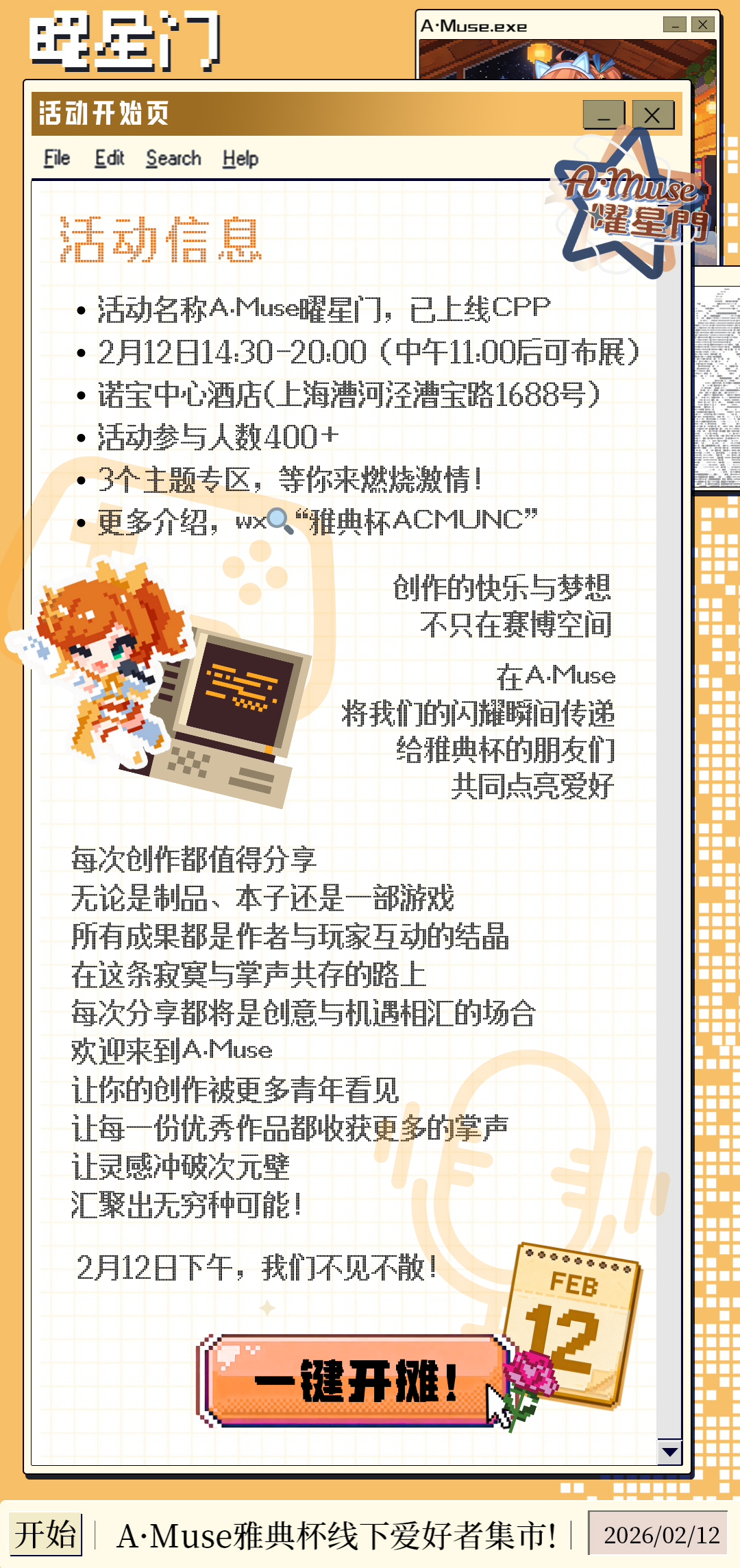 2026年2月12日 14:30-20:00(中午11:00起可入场布展哦~)