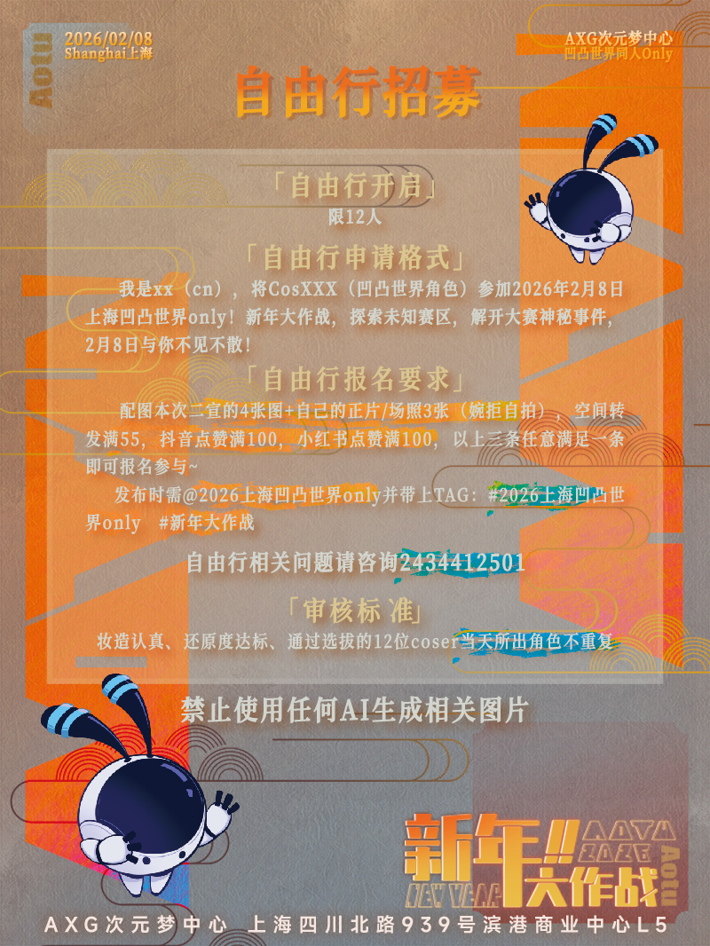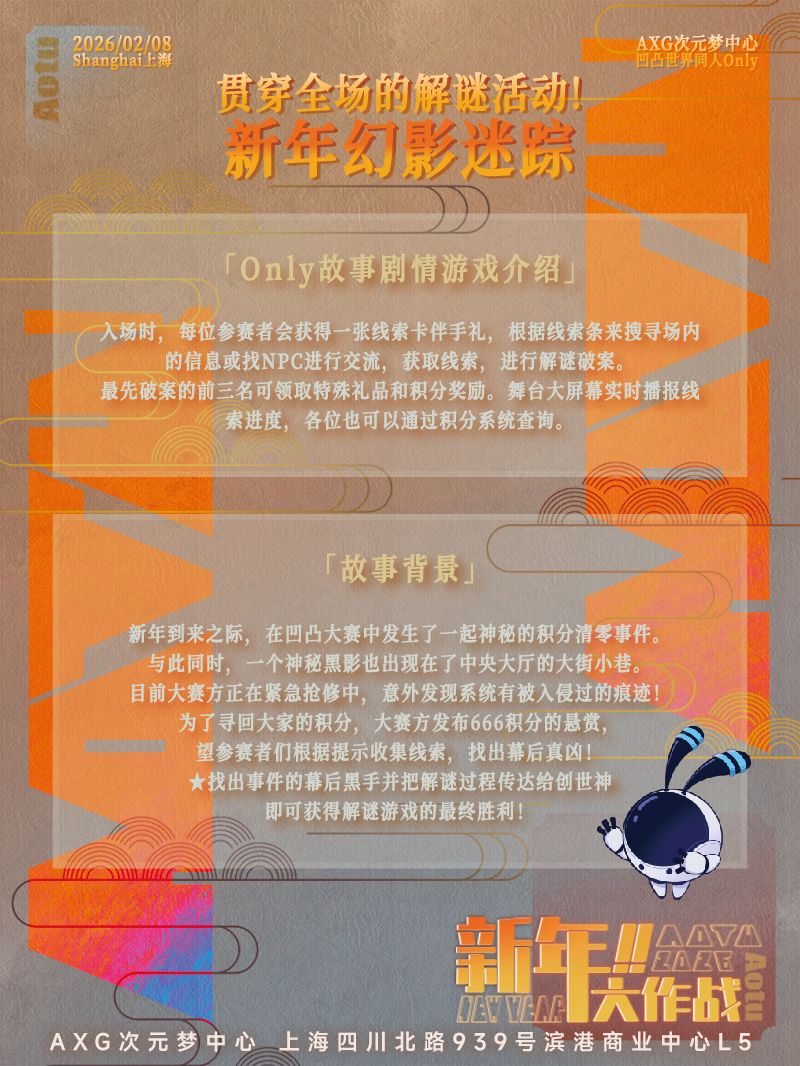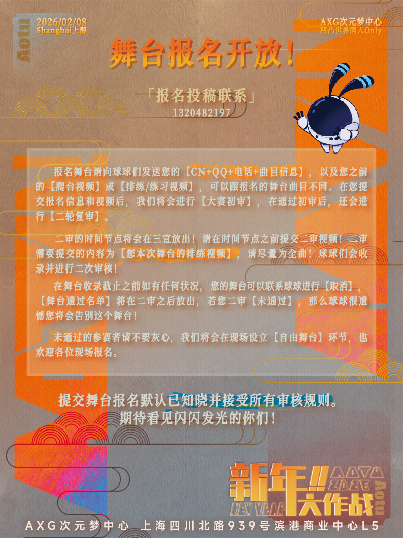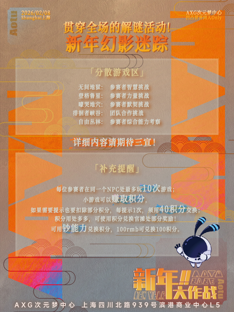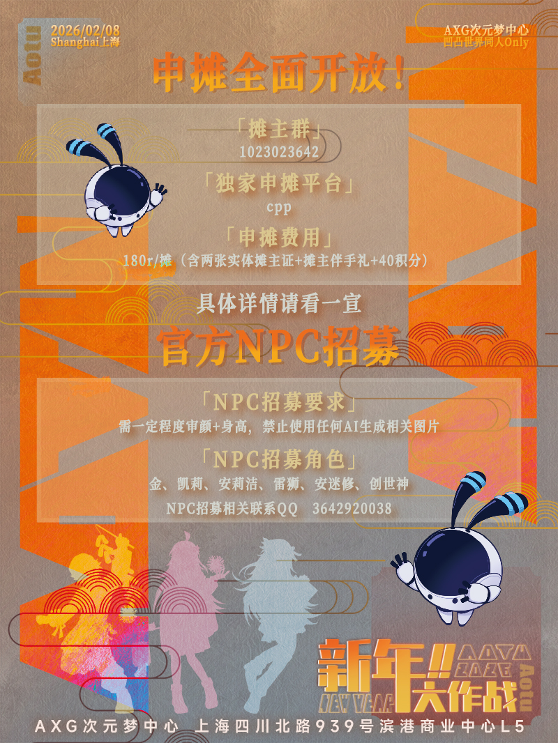 【活动地址】上海市虹口区四川北路939号滨港商业中心5楼AXG次元梦中心