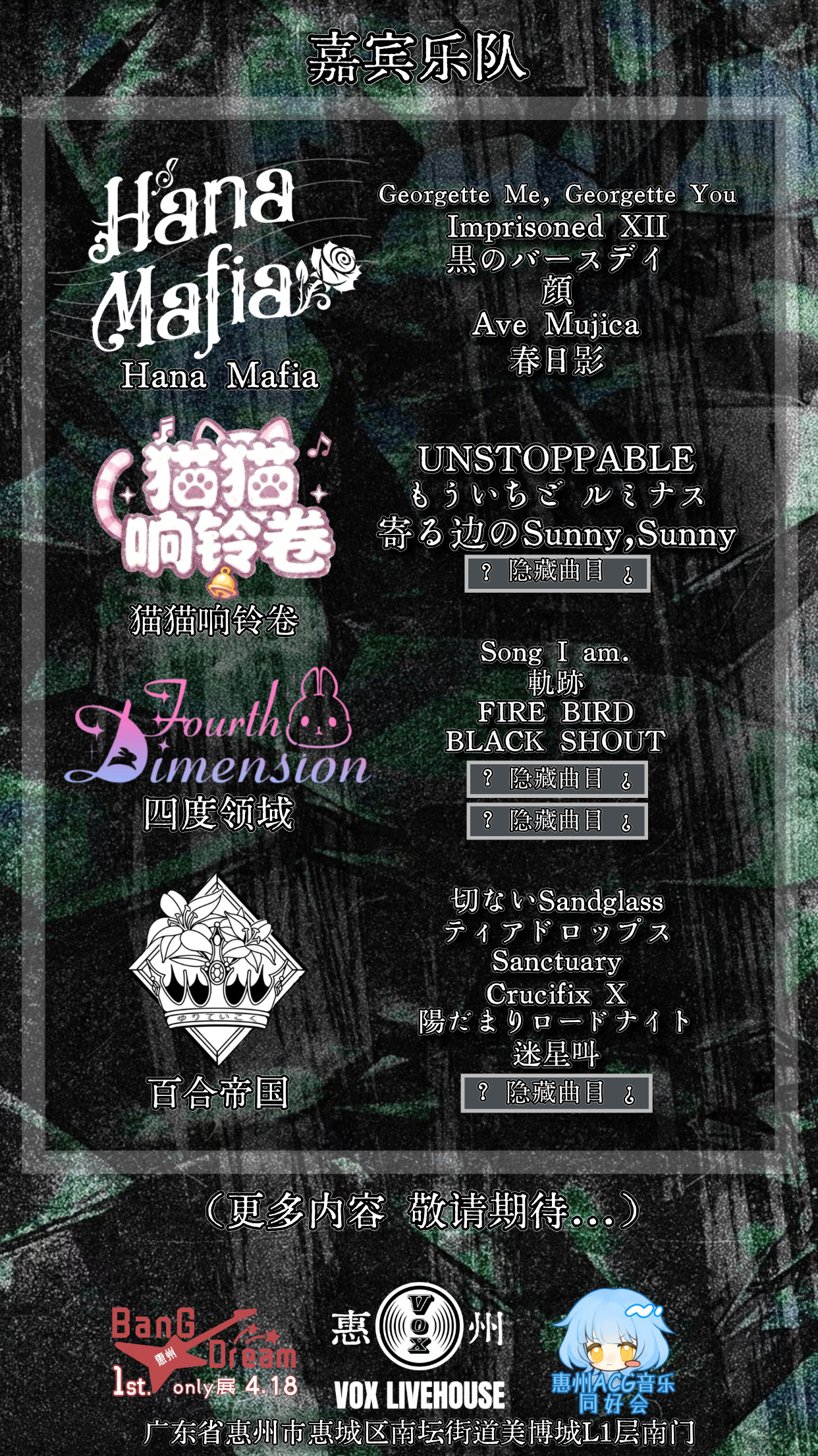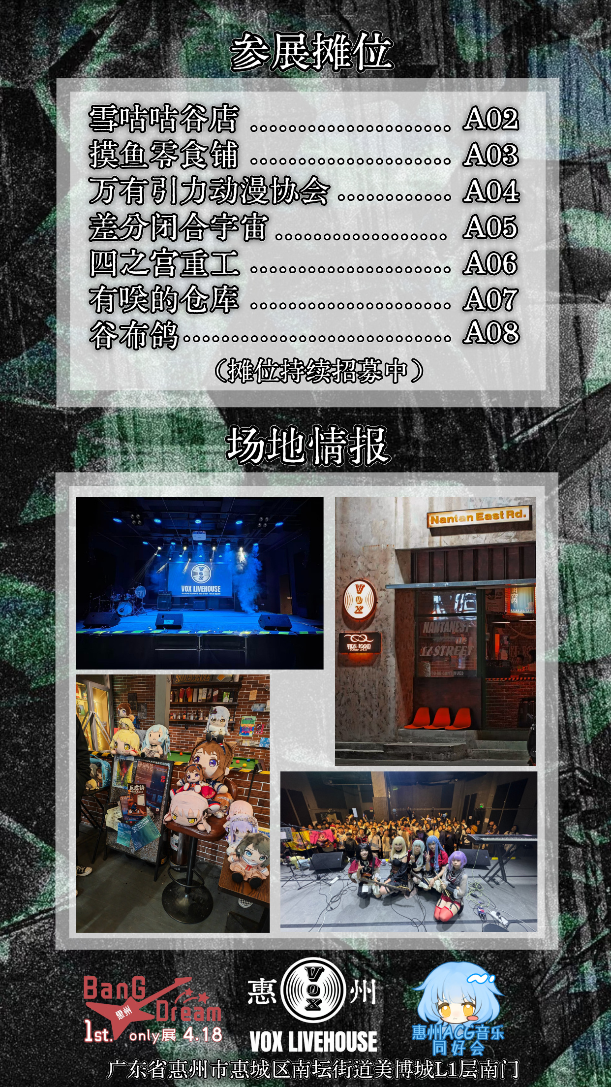 地址:广东省惠州市惠城区南坛街道美博城L1层南门 VOX LIVEHOUSE