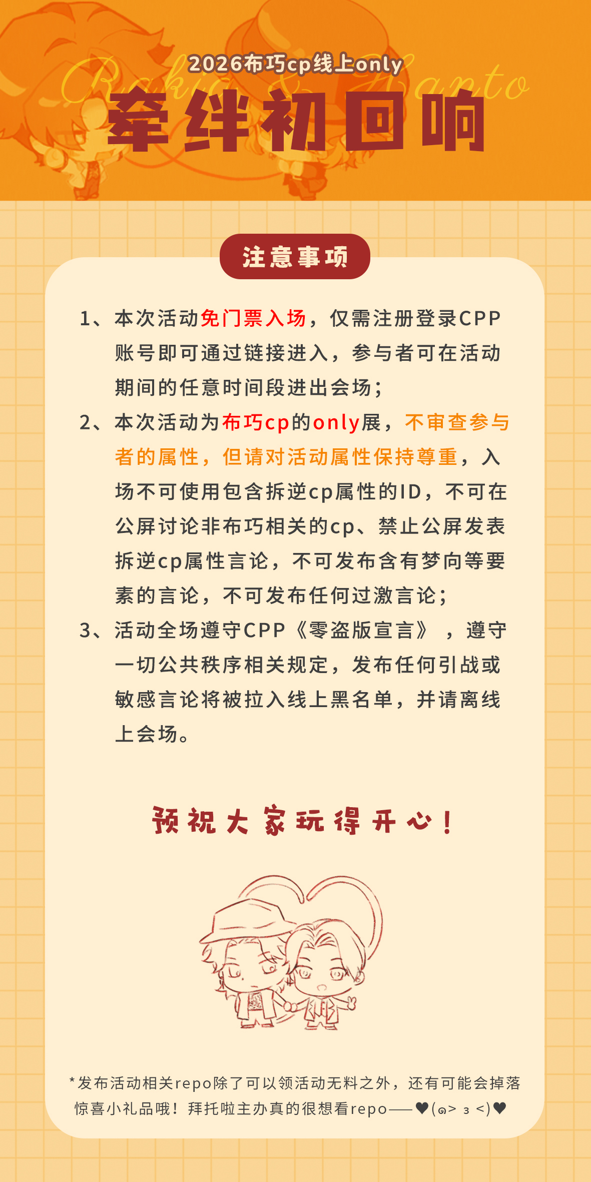 嗨,你好,这里是2026年第一次进行尝试的布巧cp线上only展!