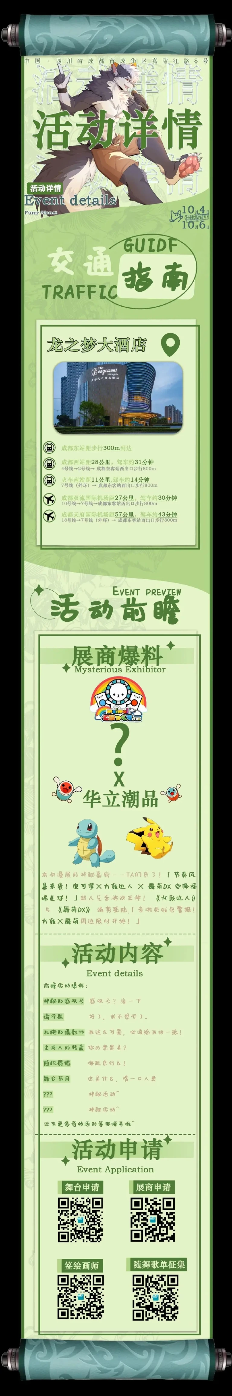 【摊位申请】【签绘画师申请】【舞台表演申请】【随舞歌单收集】等表单收集持续开放中,您可在微信公众号上点击填写申请表单,或者在qq群内的群公告内点击链接填写