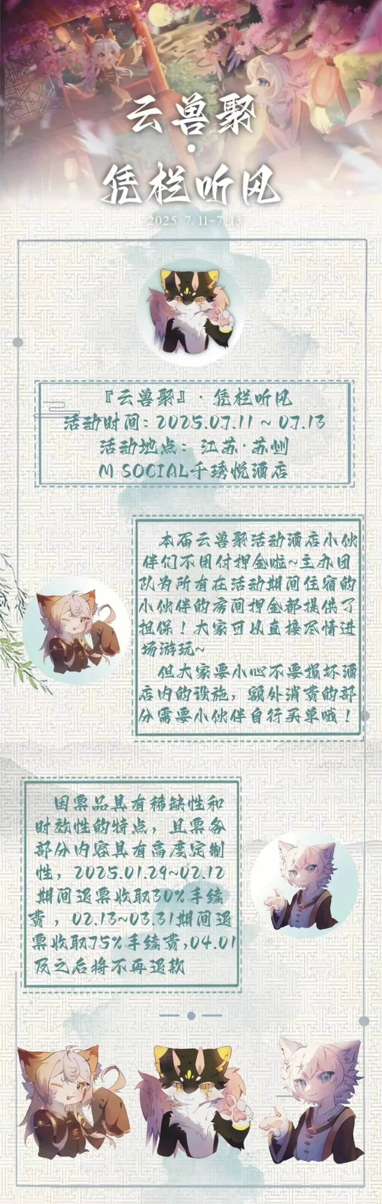 今夏,让兽耳竖起,让尾巴摇摆!在姑苏园林邂逅穿越兽世,金鸡湖畔的「苏州M Social千琇悦酒店」将于2025.7.11-7.13化作幻想结界!等你开启毛茸茸的冒险之旅!
