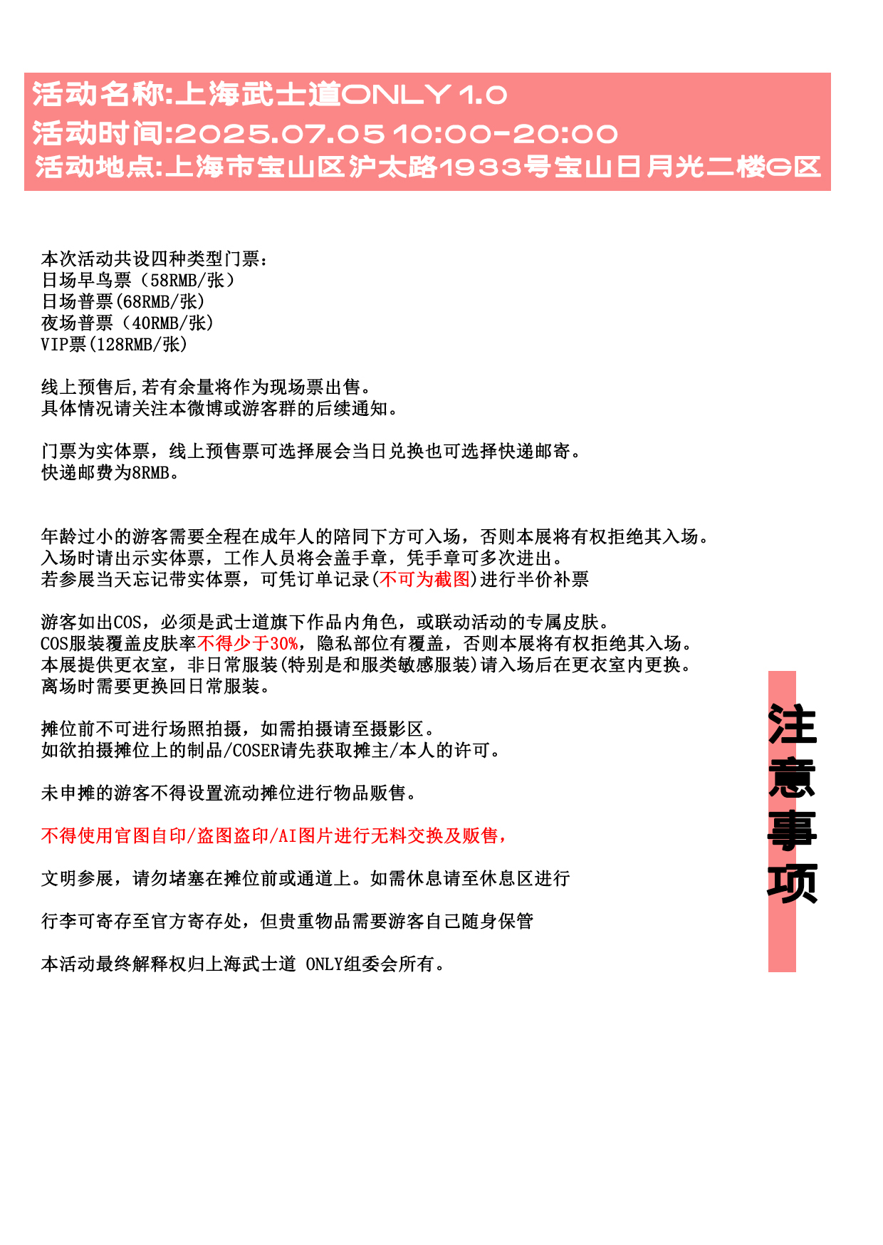 CPP上的标题及事前摊宣时需要标明【上海武士道O首发】