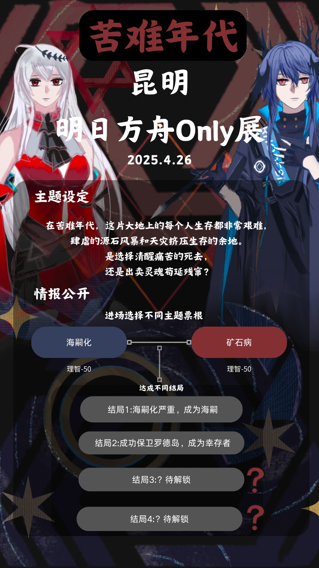 「在泰拉最黑暗的年代,天灾与源石风暴撕碎大地。清醒的死亡,或是扭曲的存活——
