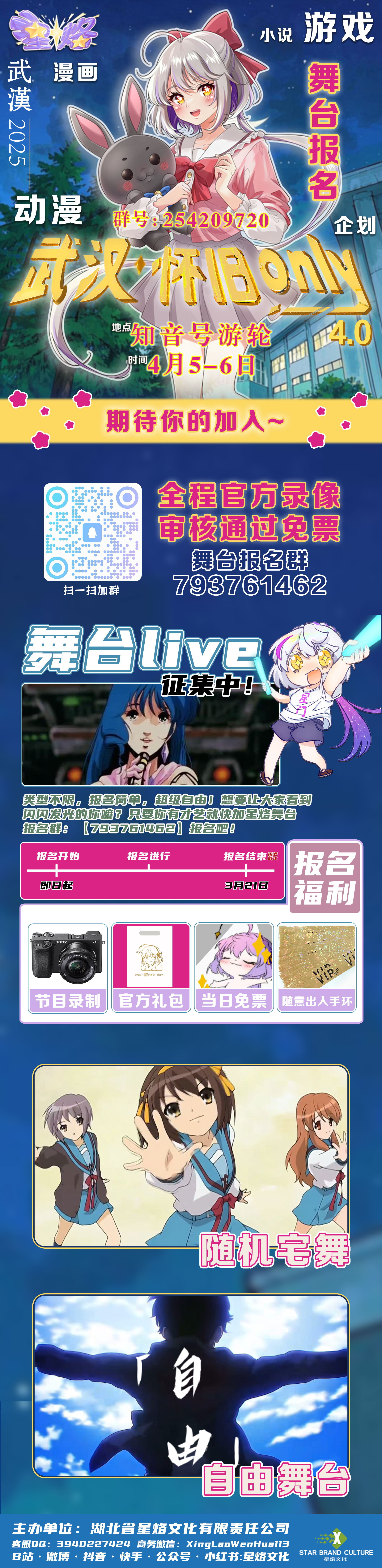 舞台持续招募中,福利大升级!★舞台LIVE,★随机舞蹈,★自由舞台等一些精彩活动,其中报名舞台live的小伙伴,只要是通过审核就可以免票入场哦~舞台报名群号:793761462