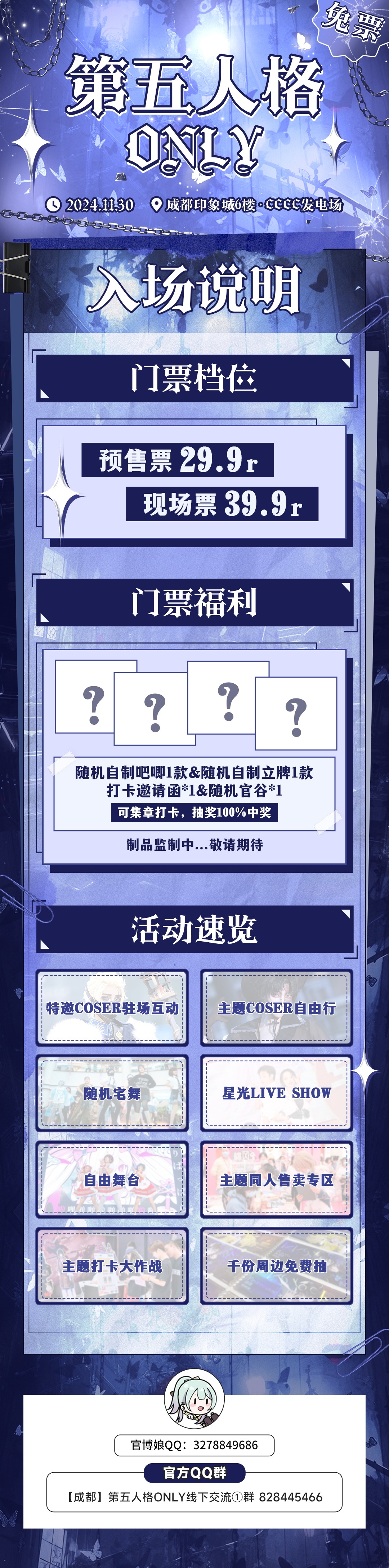本次为免费入场体验,所售礼包为B站会员购礼包,包含打卡邀请函、周边等,可参与打卡抽奖等其他福利。