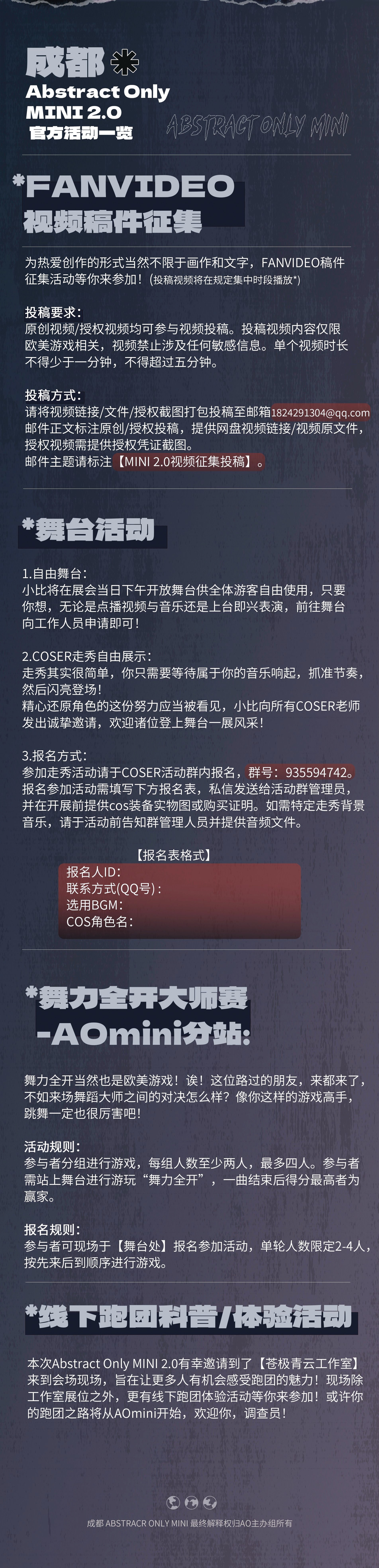 Abstract Only MINI 是每场限定主题的小型欧美同人二创文化交流展会。Abstract Only MINI 2.0是欧美西方文化背景下创作的游戏作品/游戏延伸作品的女性向创作沟通交流活动。