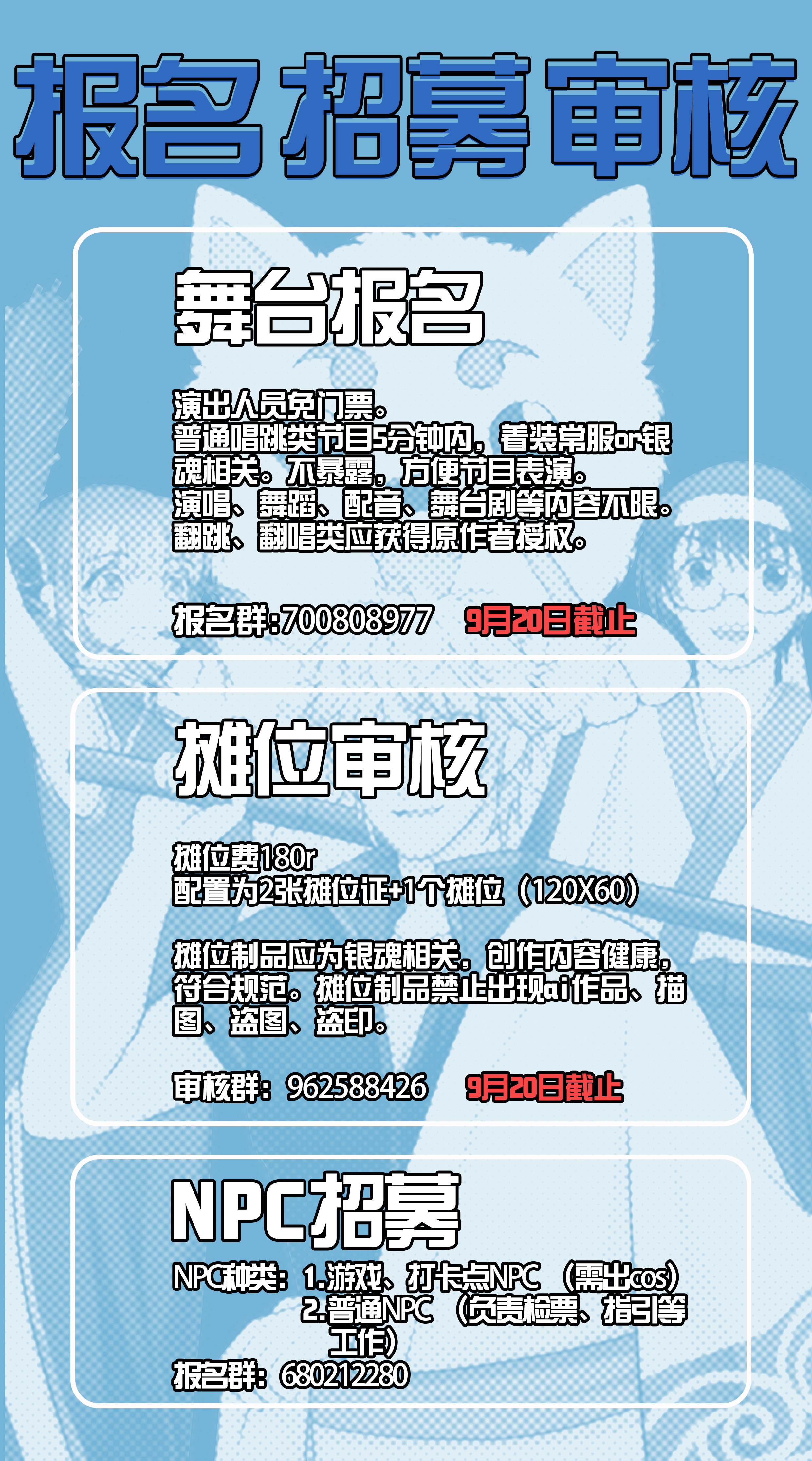 舞台、NPC、自由行报名:见下图内容