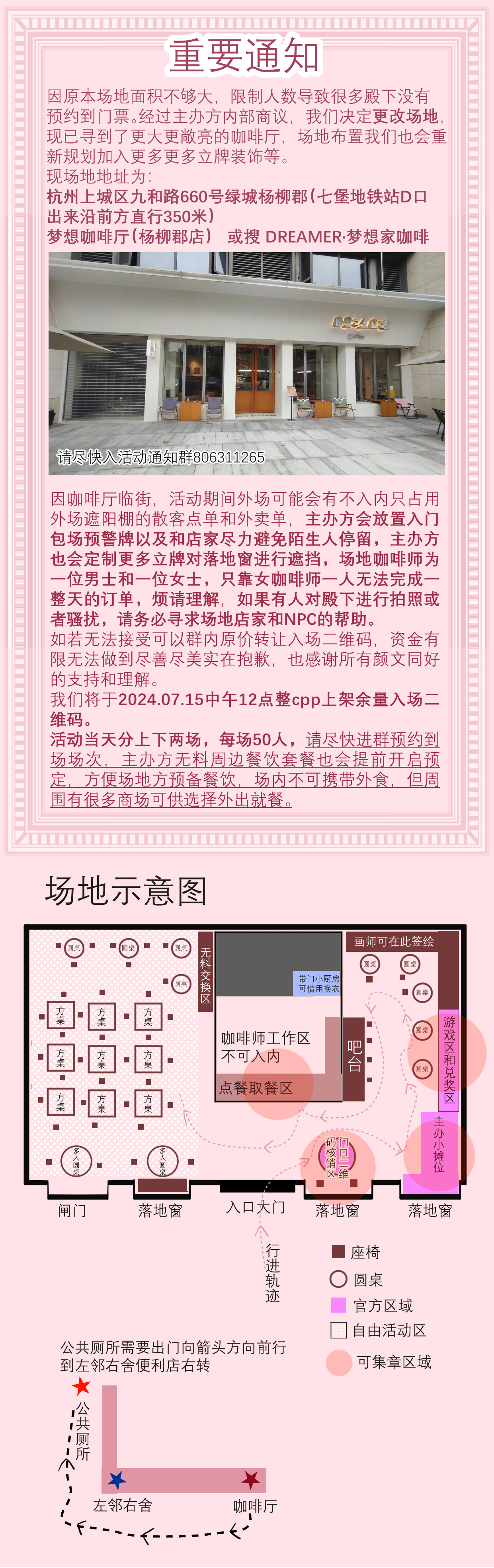 活动群:806311265 换场地了,请购票的游客尽快入群选定上午还是下午的场次。
