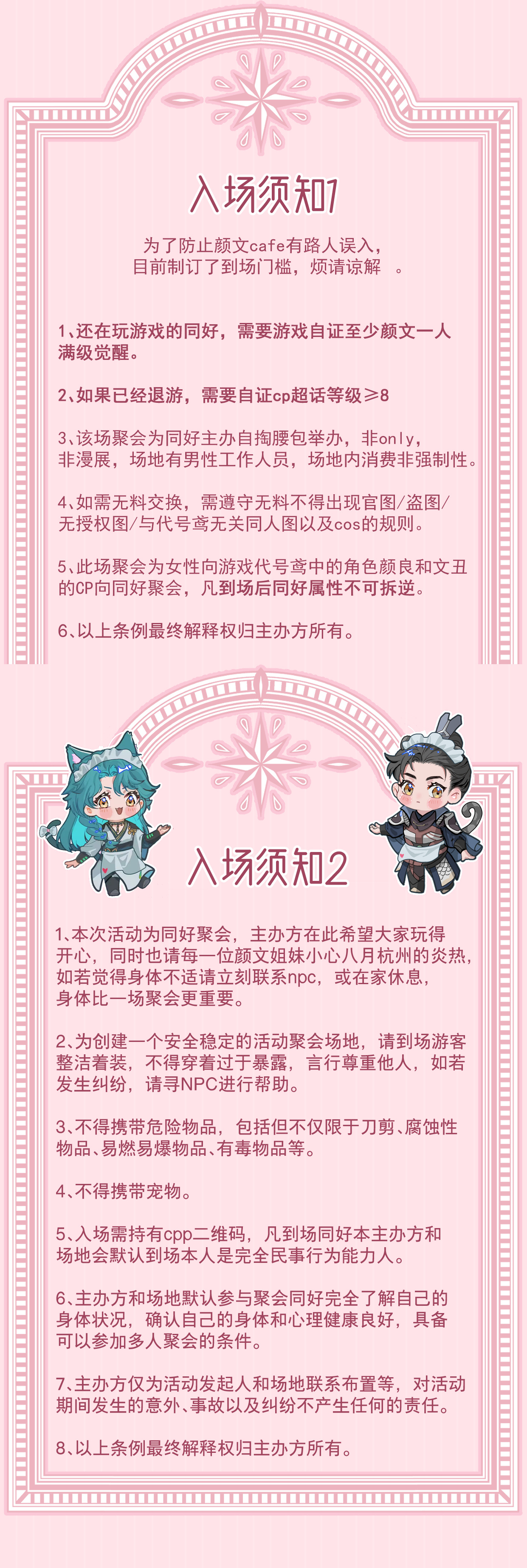为保证场地安全,入场除了CPP票还有游戏自证,无自证无法进入,需要颜文至少一人觉醒,如已卸载游戏,需要鸢颜文微博超话8级或以上,现在开始连续打卡还来得及,如若两者都没有,需要主要高强度磕颜文CP的证明,例如COS,谷子,同人产出等,若以上都没有,则可能会被拒绝进入,烦请谅解。