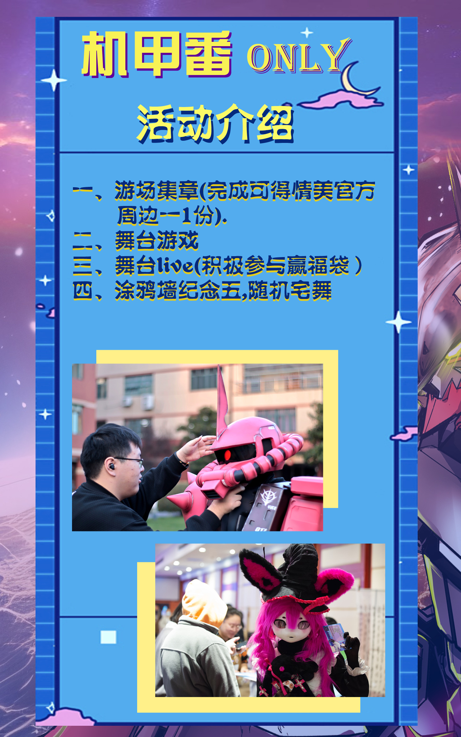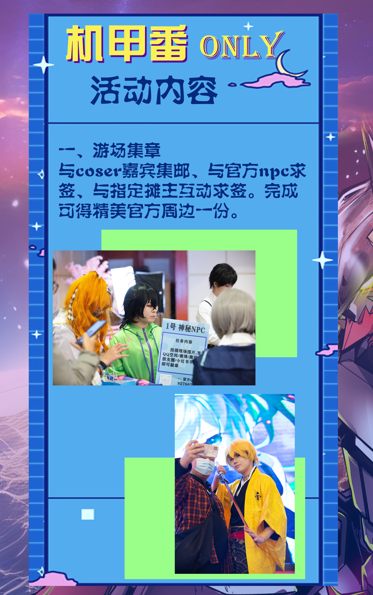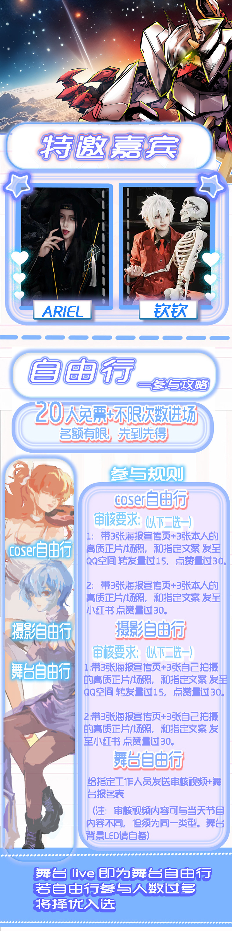 图片需带 机甲番海报+自由行海报+不少于5张个人作品(高质量摄影正片/场照)