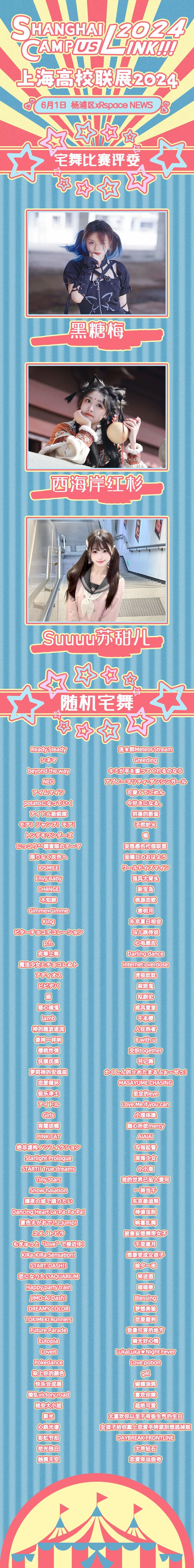 来自全上海及周边城市三十多个社团的同台竞赛,特邀评委黑糖梅、西海岸红杉、Suuuu苏甜儿。