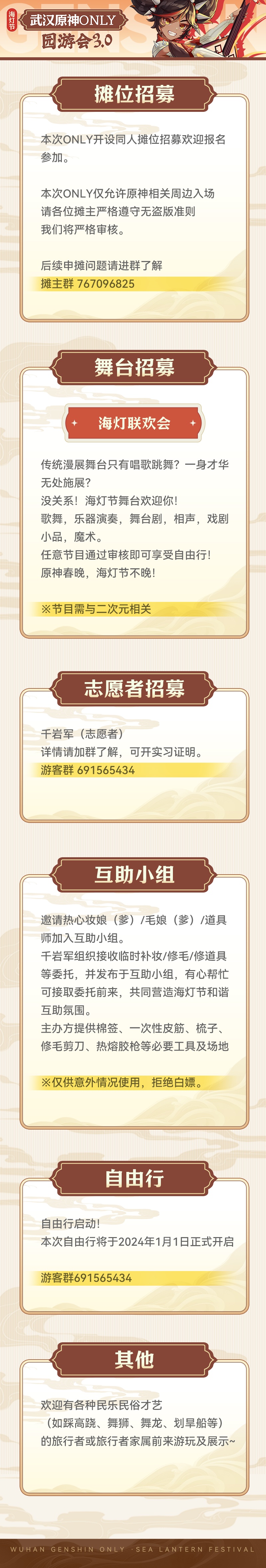 武汉原神only园游会3.0——海灯节 定档2024年2月24-25日