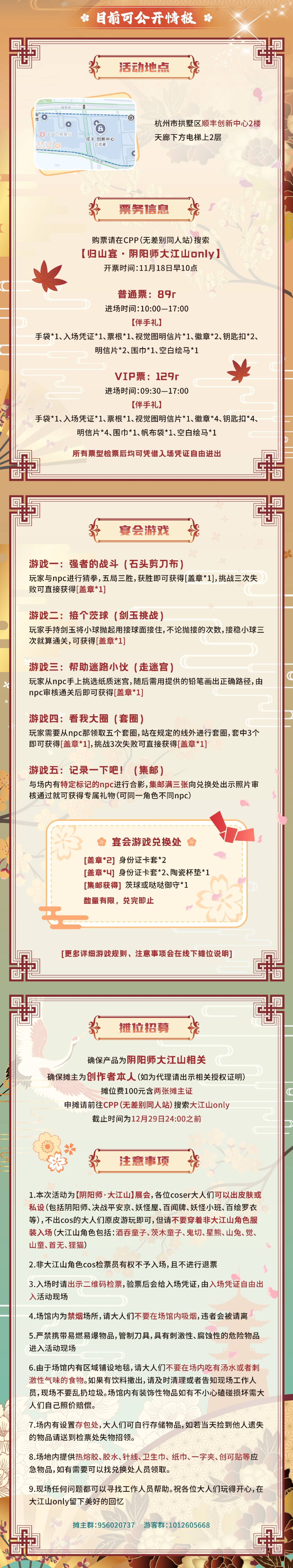 本次参展制品仅限大江山角色(酒吞、茨木、鬼切、星熊、山童、山兔、觉、狸猫、独眼小僧、提灯小僧、首无,包括sp形态、百闻牌、百绘罗衣、联动、同人等)