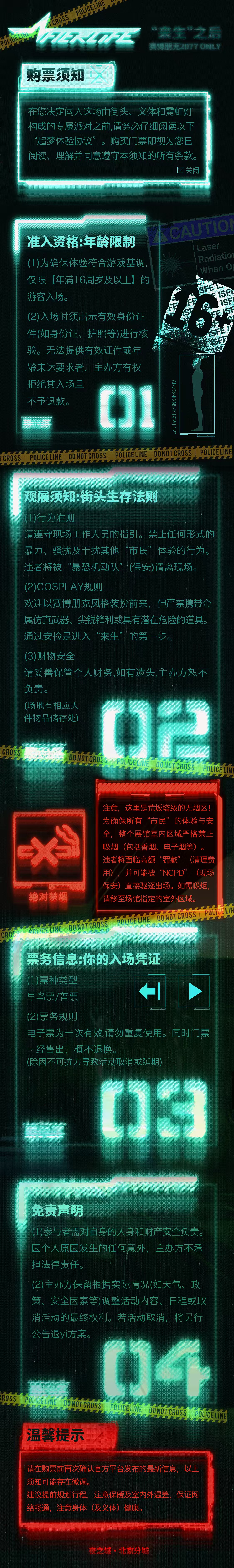 在您决定闯入这场由街头、义体和霓虹灯构成的专属派对之前,请务必仔细阅读以下“超梦体验协议”。购买门票即视为您已阅读、理解并同意遵守本须知的所有条款。