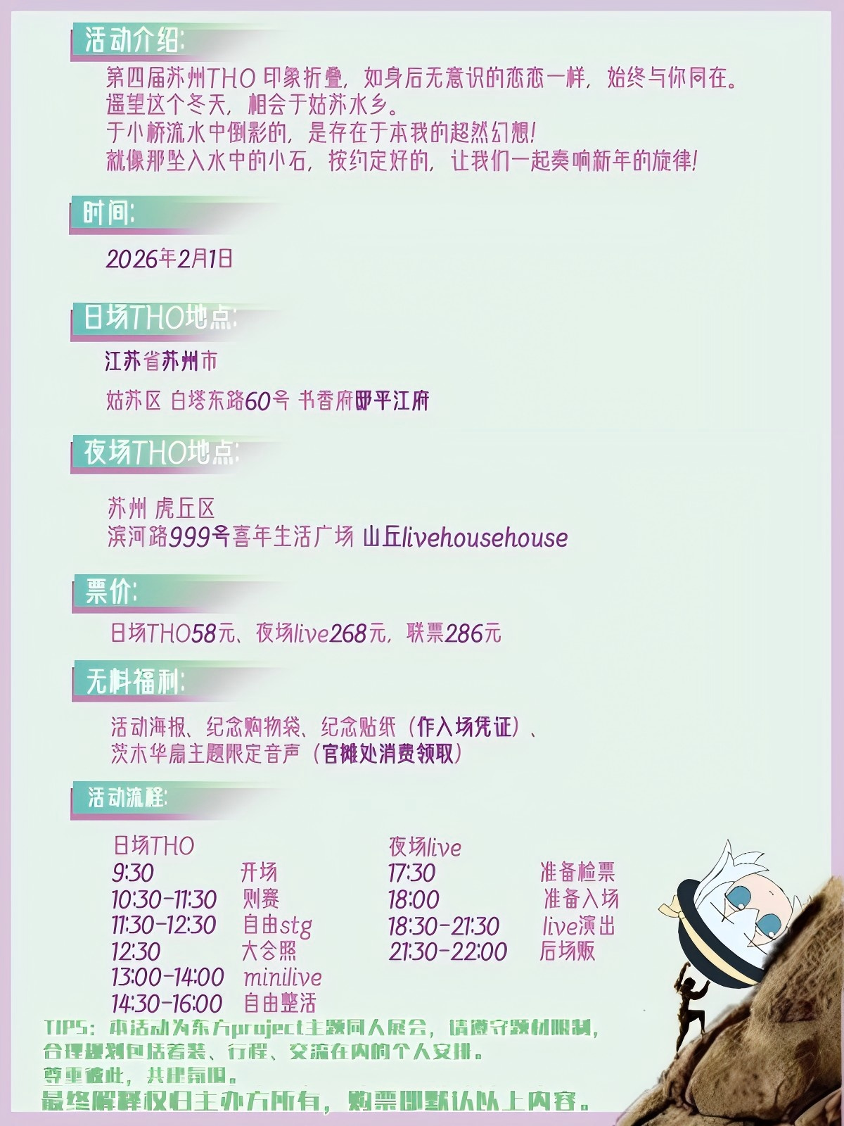 注:本活动为东方project主题同人展会,请遵守题材限制,合理规划包括着装、行程、交流在内的个人安排,尊重彼此,共建氛围。