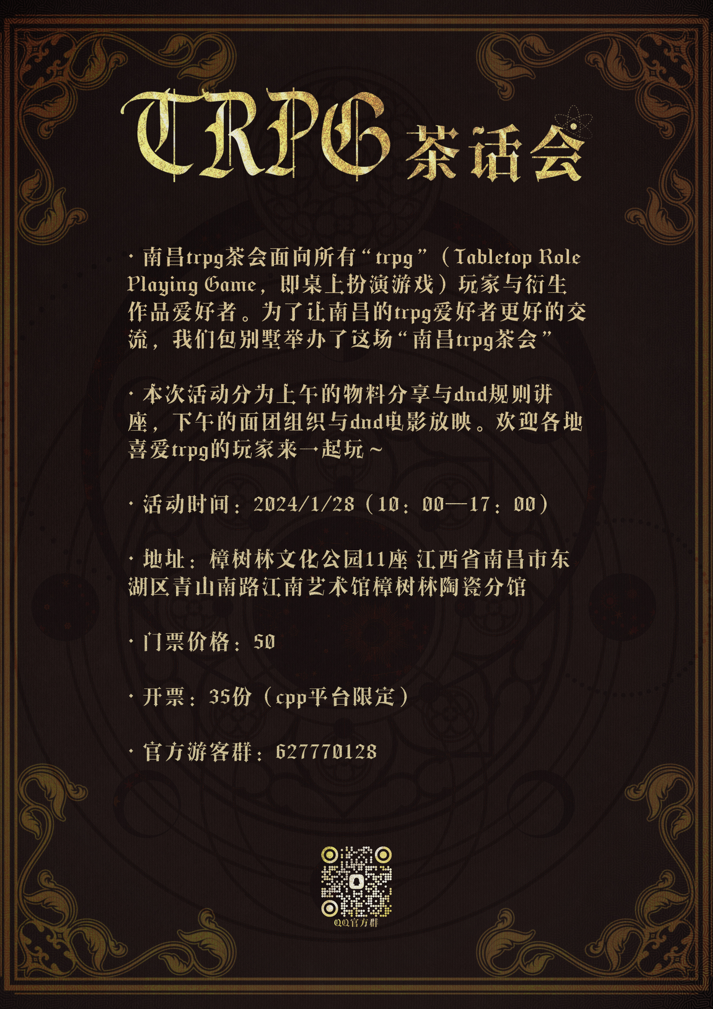 本次活动分为上午的物料分享与dnd规则讲座,下午的面团组织与dnd电影放映。欢迎各地喜爱trpg的玩家来一起玩~