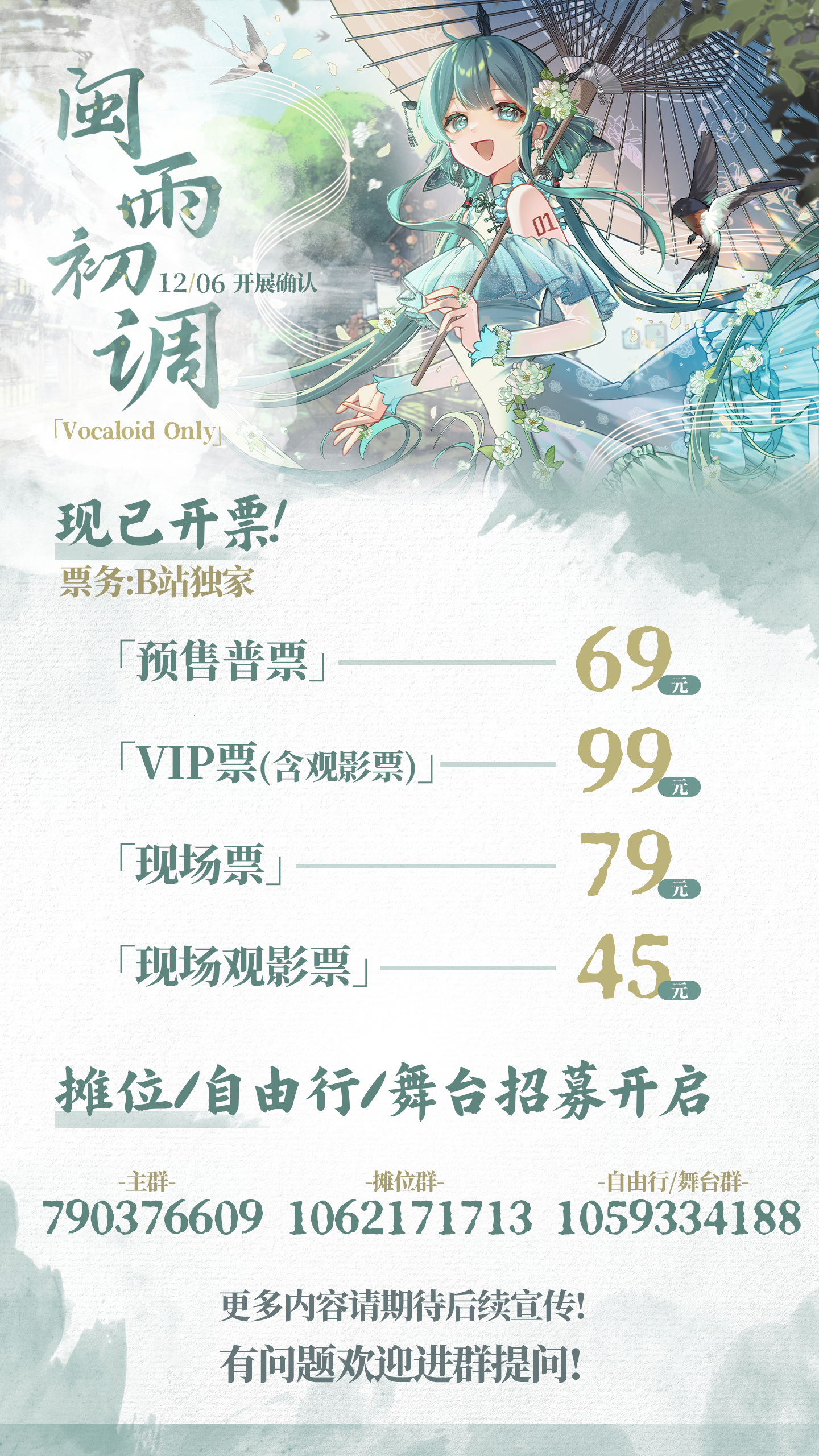 本展会禁止出现术力口不相关制品(这里的术力口指一个大类,不仅限vocaloid,直接写术力口是方便理解!),违反者将直接扣除押金并记录,一年内不允许参加闽雨初调相关展会。
