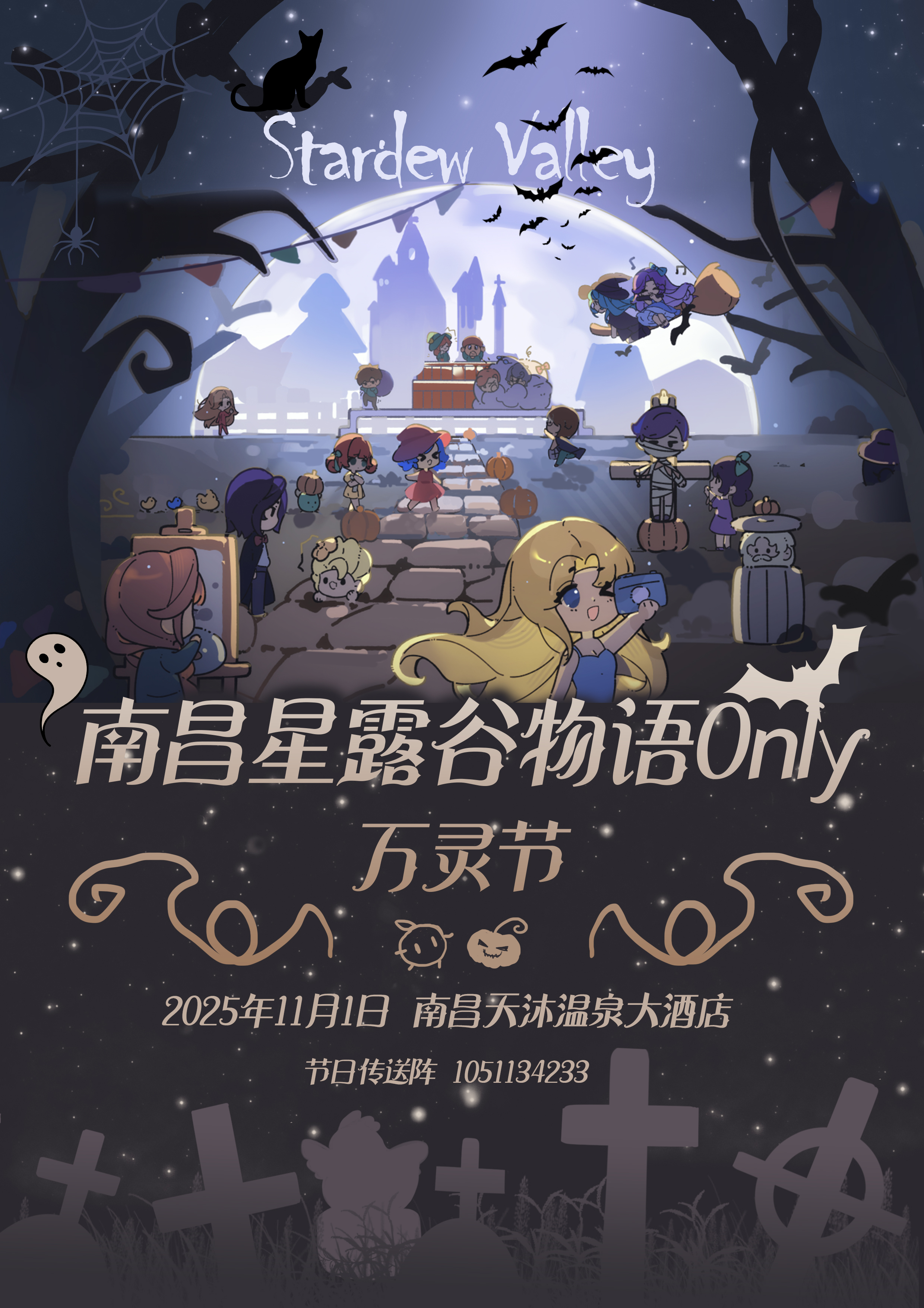 欢迎老乡来到南昌星露谷物语only·万灵节,最新活动公告请加游客群1051134233,在下方repo区,staff们会及时更新最新的活动信息,敬请关注。2025年11月1日,呼啸着和我们一起庆祝万灵节!