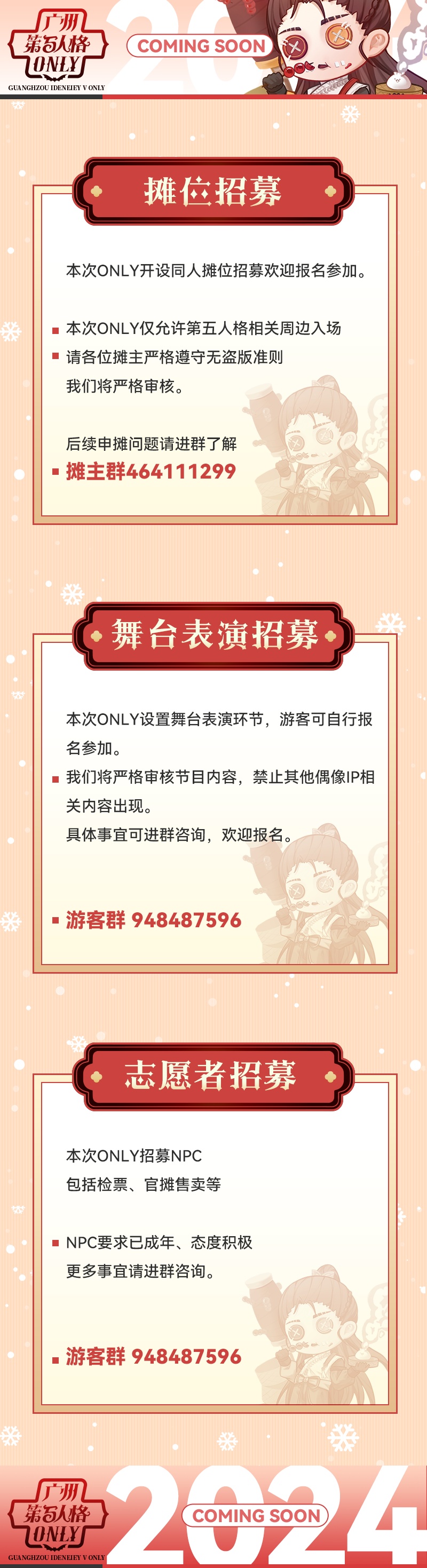嘉宾、现场活动、随票内容等更多详细信息请关注游客群通知与各官方账号: