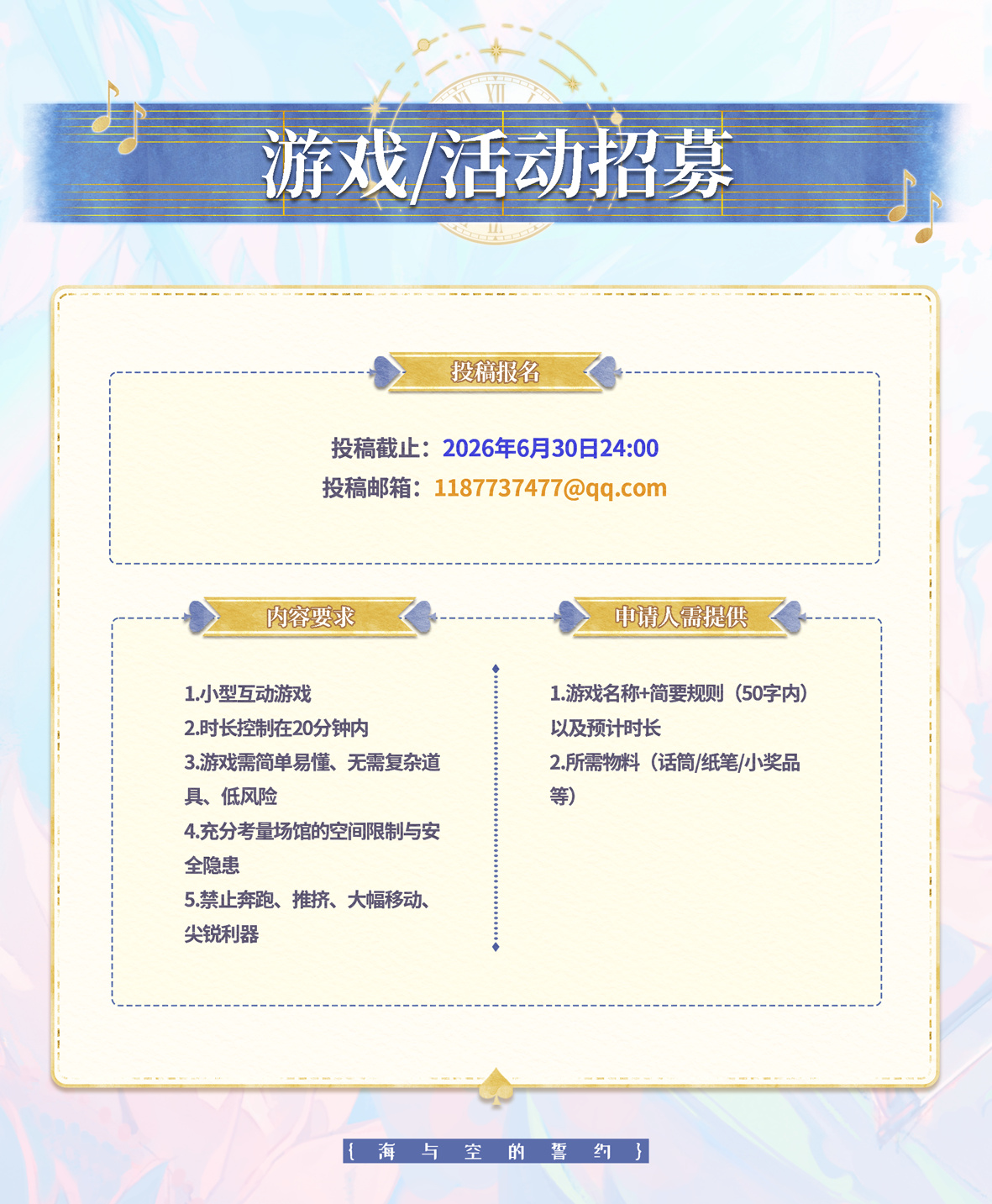 2. 主题为婚礼,仅允许16周岁及以上女性(即2010年7月17日之前出生)参加,敬请谅解。