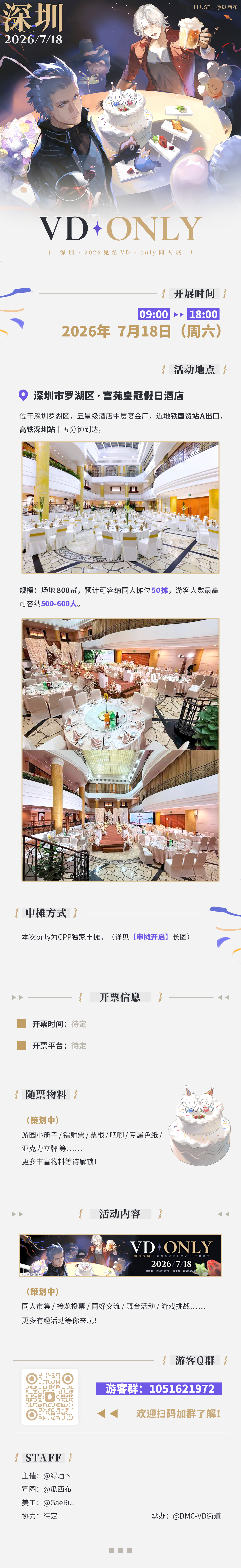 申摊要求:每个摊位包含至少3件以上VD相关制品 或 至少1本VD相关的刊物。有刊物/明信片集等可优先参展。