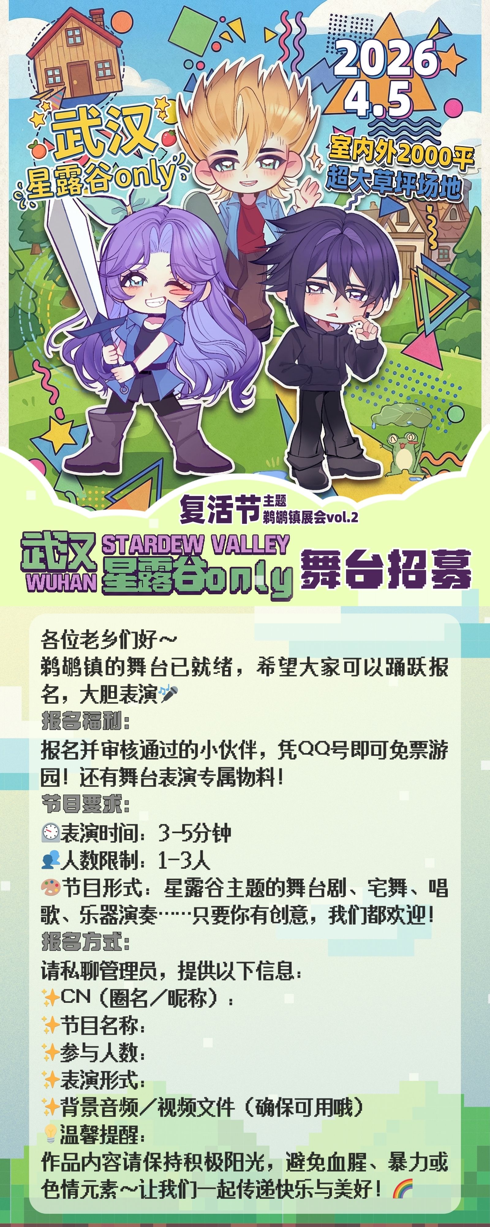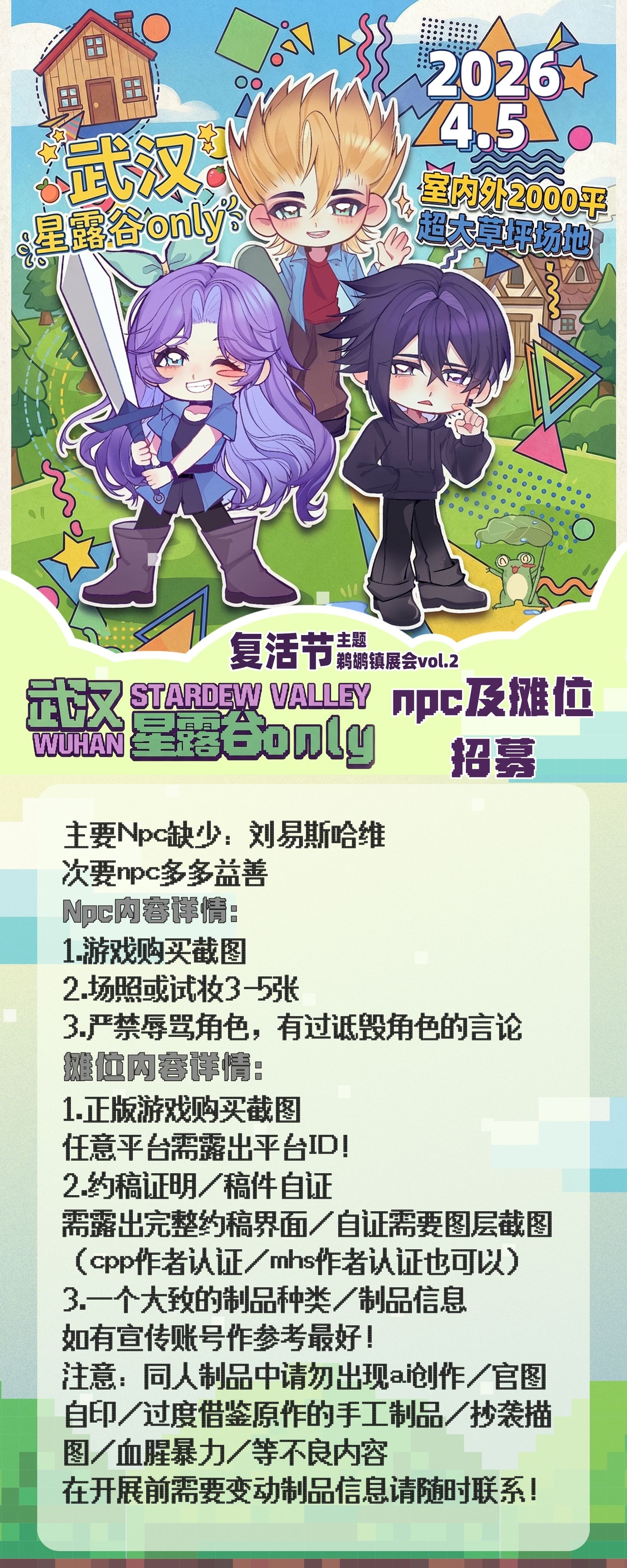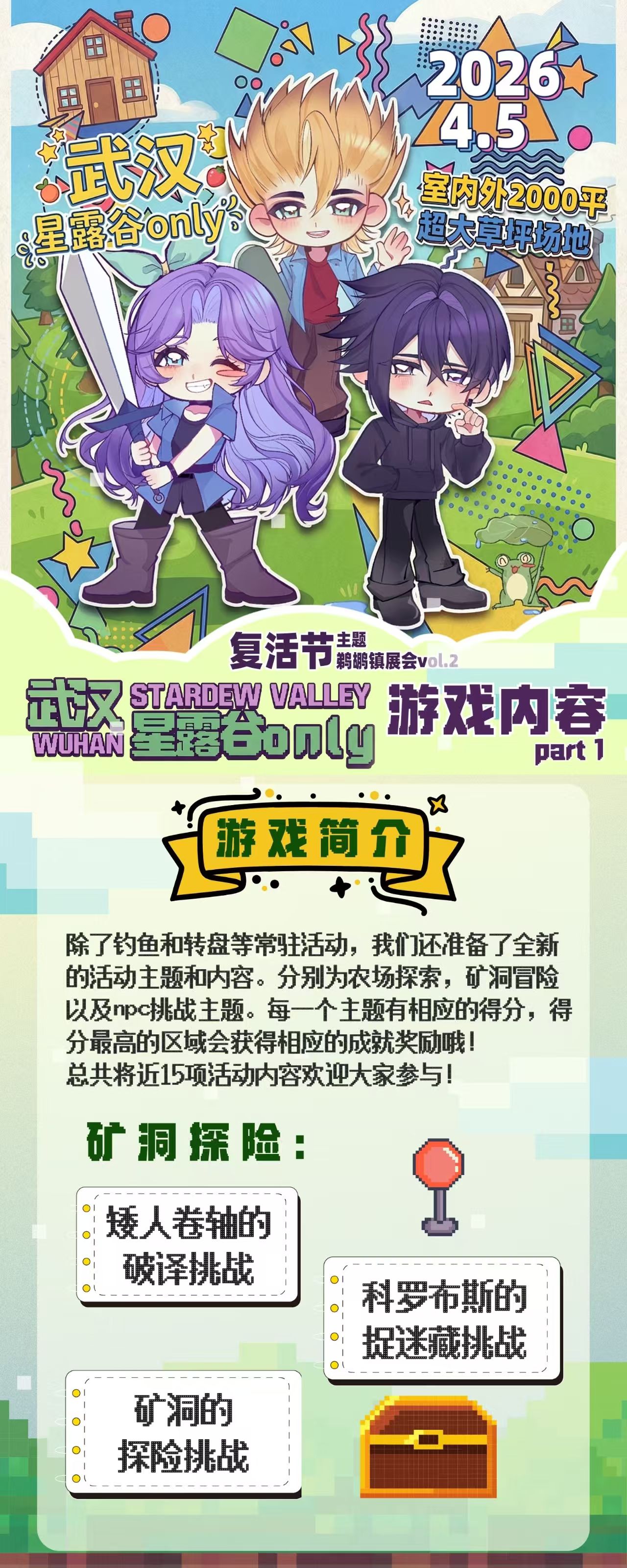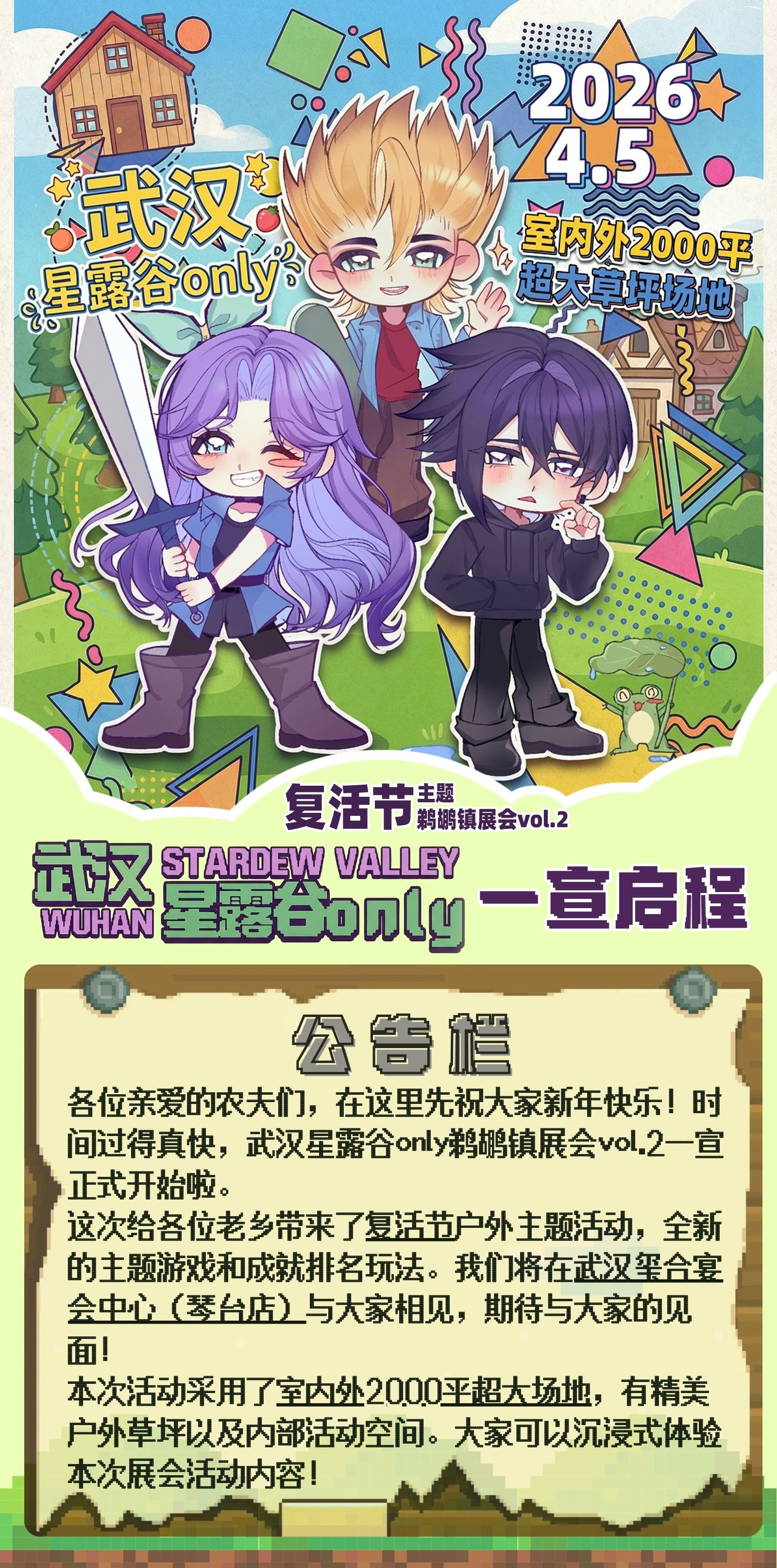 各位亲爱的农夫们,在这里先祝大家新年快乐!时间过得真快,武汉星露谷only弟鹕镇展会vol.2一宣正式开始啦。
