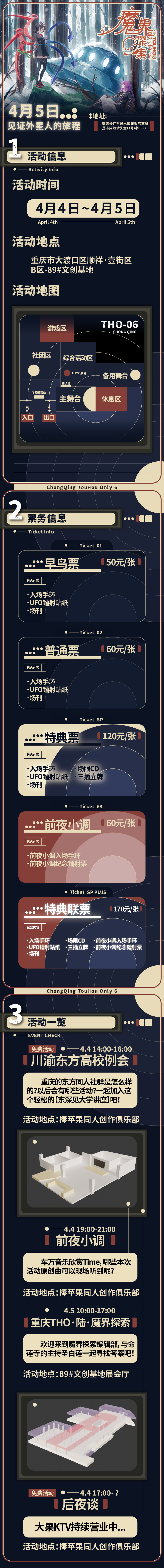 我们将于2026年4月5日,在重T4古战场壹街区举办活动。虽然离地铁站较远,但是夜场不用奔袭百里路了。以及这次是重T场地最大的一集!除此之外,4.4也有前夜小调,一起期待吧!
