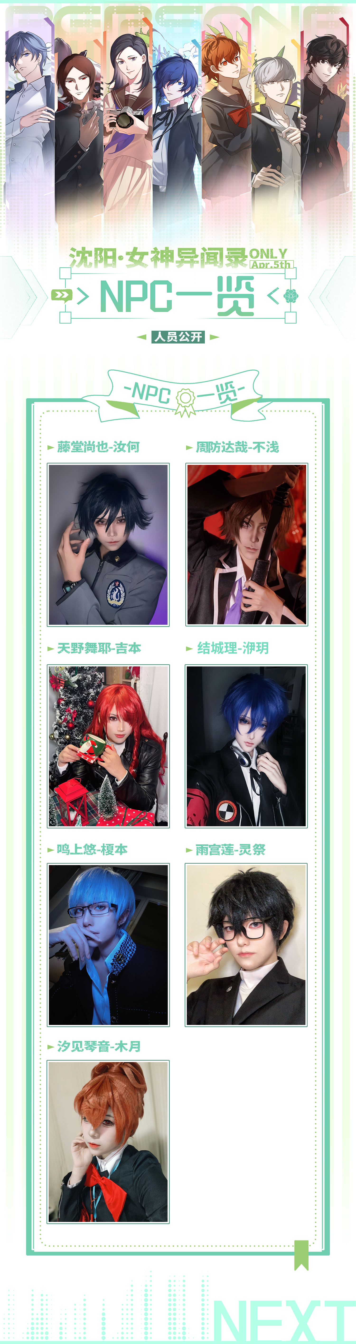 2.本活动为女神异闻录系列游戏ip同人性质展会,活动内仅可出现与女神异闻录系列相关的角色、元素及二创内容,禁止出现任何其他IP的联动角色或混搭行为。