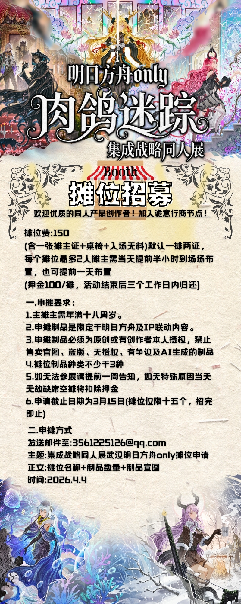 摊位招募同步开启,各位优质的同人制品老师可以可以申请摊位,详细内容见群公告~