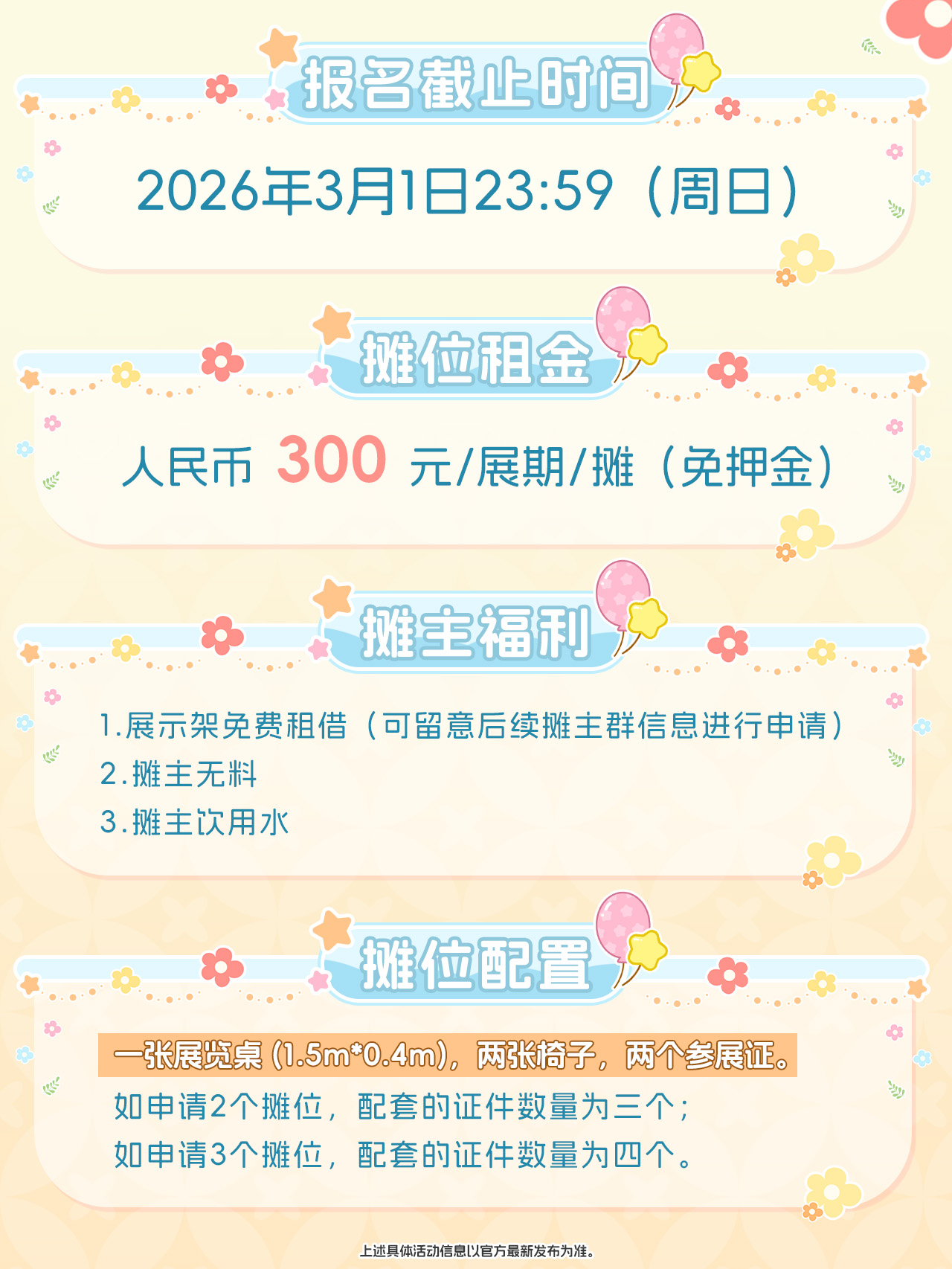 ☆摊位租金:人民币300元/展期/摊(免押金)