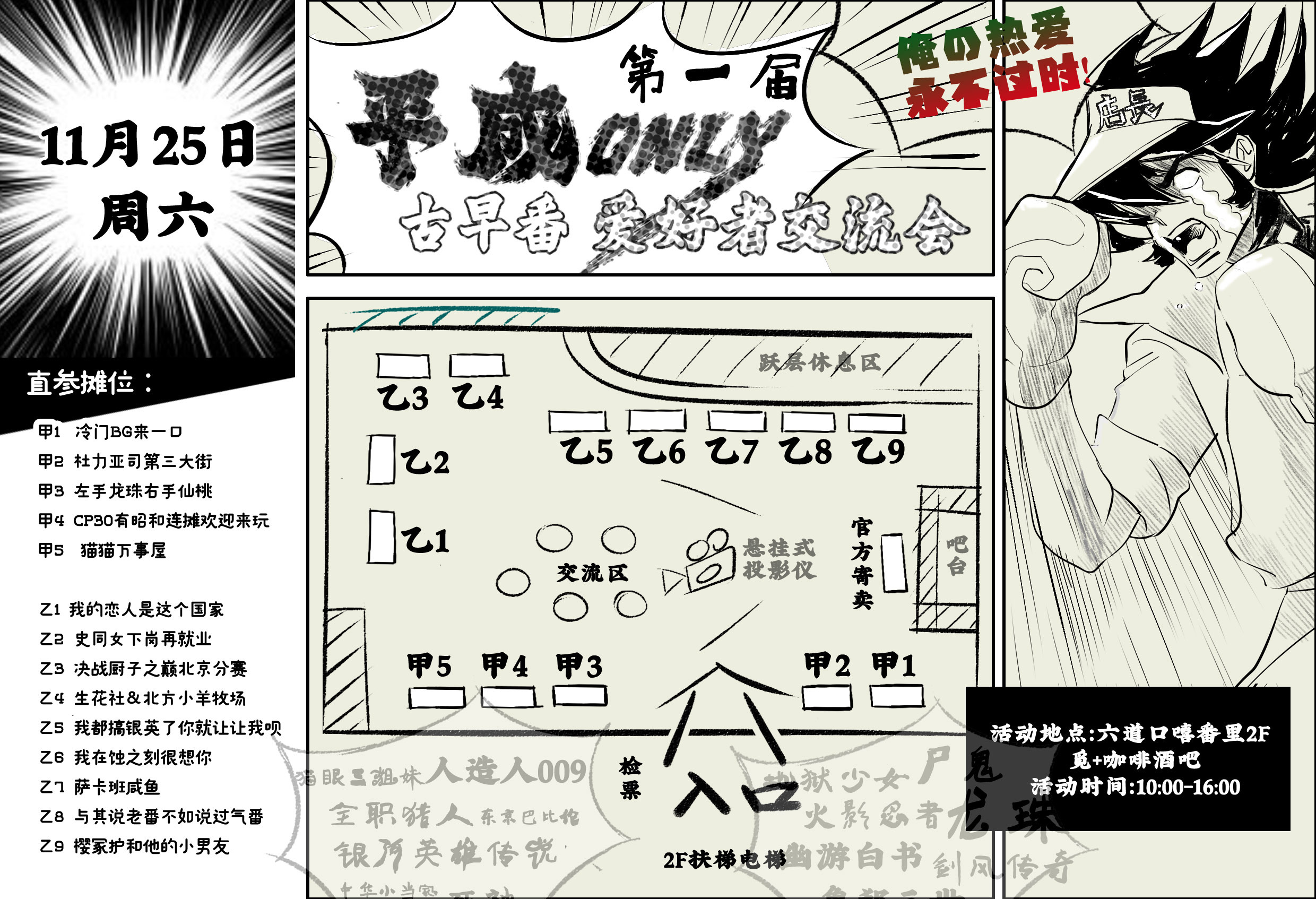 古早番ONLY堂堂开宣!古早作品爱好者抱团取暖,必须有俺一席!图上作品为活动现场已过审摊位包含的主题,摊位开放募集中,募集平成及更早时期完结,或正在连载中且连载周期在十年以上的作品。1999年前成名的作品优先。(目前已过审13摊,募集20-22摊)入场预定即将开启,欢迎加入活动交流群!!(门票已开售)
