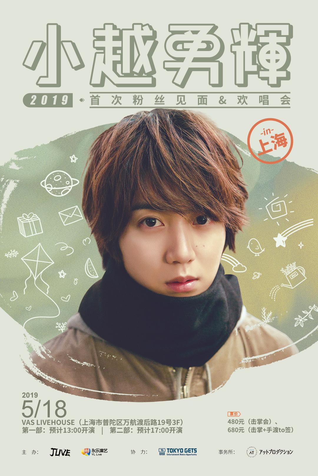 由永乐JLIVE主办,小越勇辉2019首次粉丝见面&欢唱会将在2019年5月18日,上海VASLIVE举行。