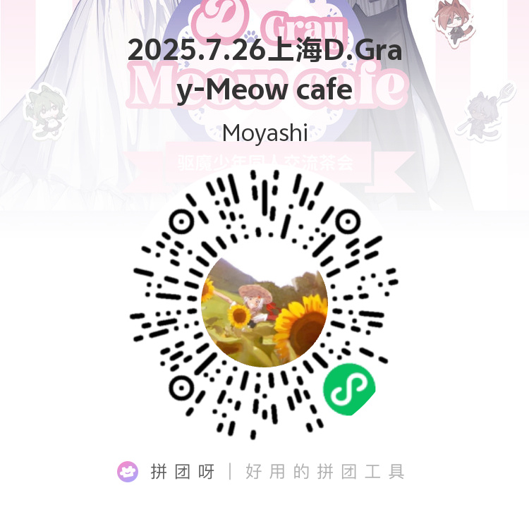 本活动为D.Gray-Meow驱魔少年+猫猫主题同人交流茶会,面向作品《D.Gray-man》粉丝的同人交流活动。