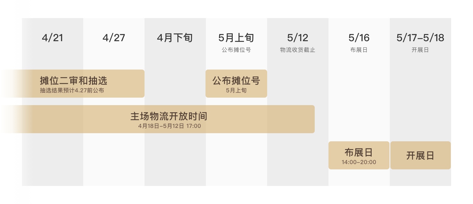 详情请点击 【申请摊位】后,查看【活动参展说明】。