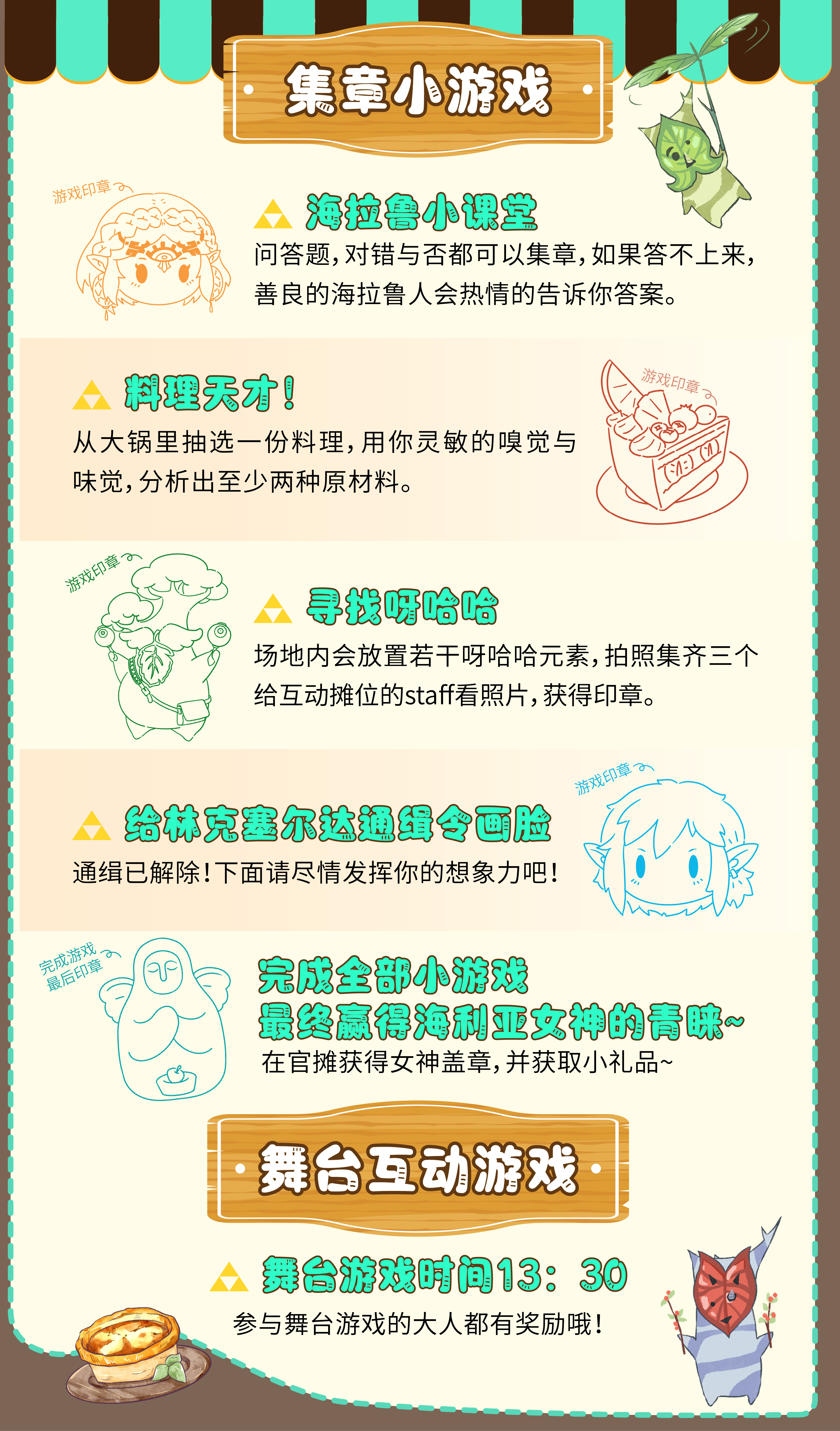 我们为各位大人准备了:甜品饮料、集章小游戏、打卡集邮、NPC互动...