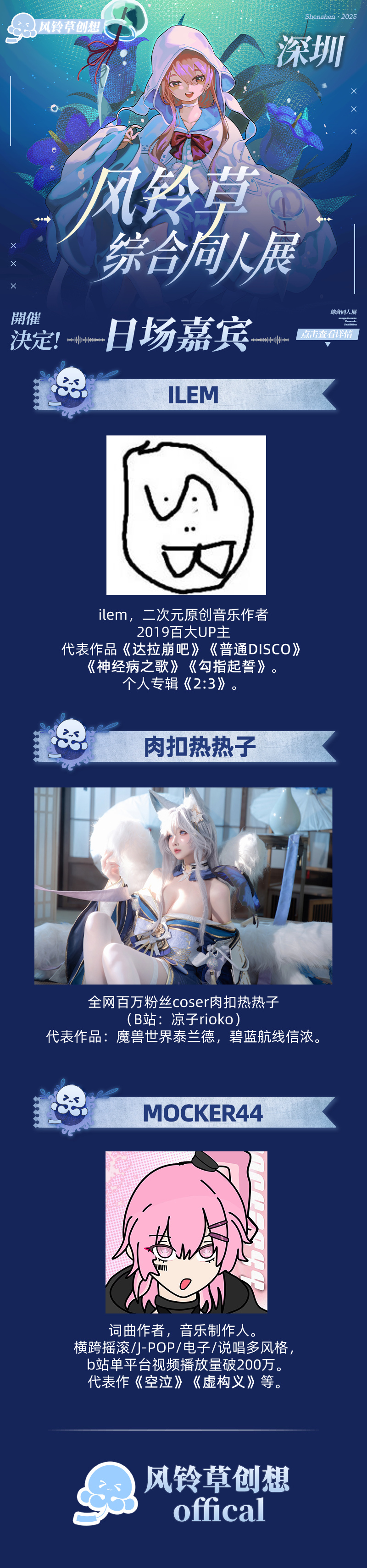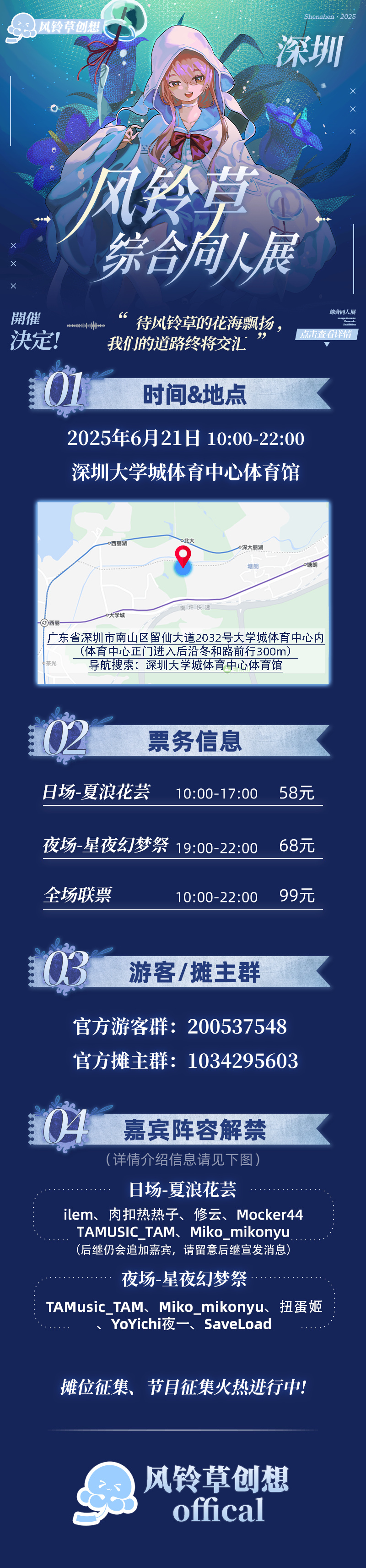 更多活动详情欢迎关注bilibili\小红书\微博:@风铃草创想official,等待后续情报更新!