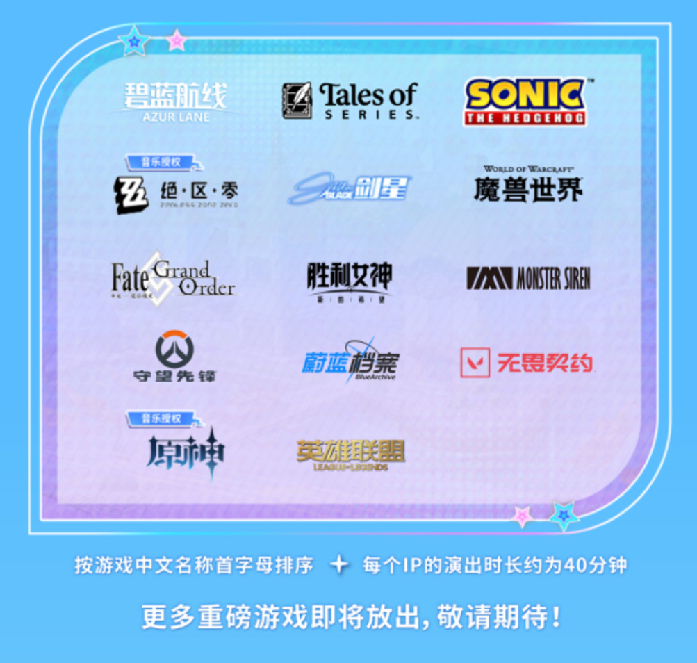 汇聚众多现象级人气游戏IP,为大家带来一场奇妙的游戏音乐之旅,伴随熟悉的BGM一起重温游戏中的经典瞬间吧!