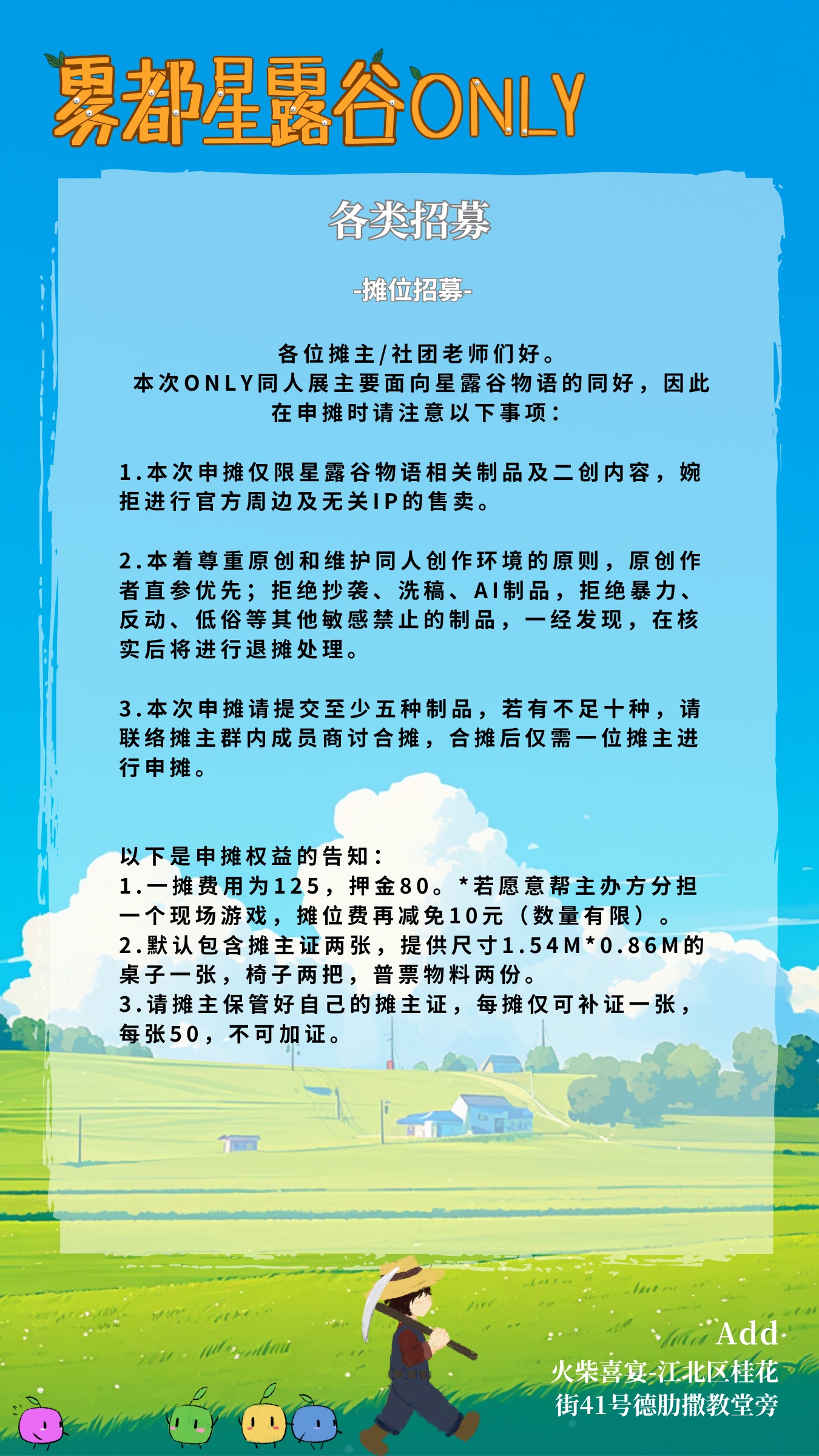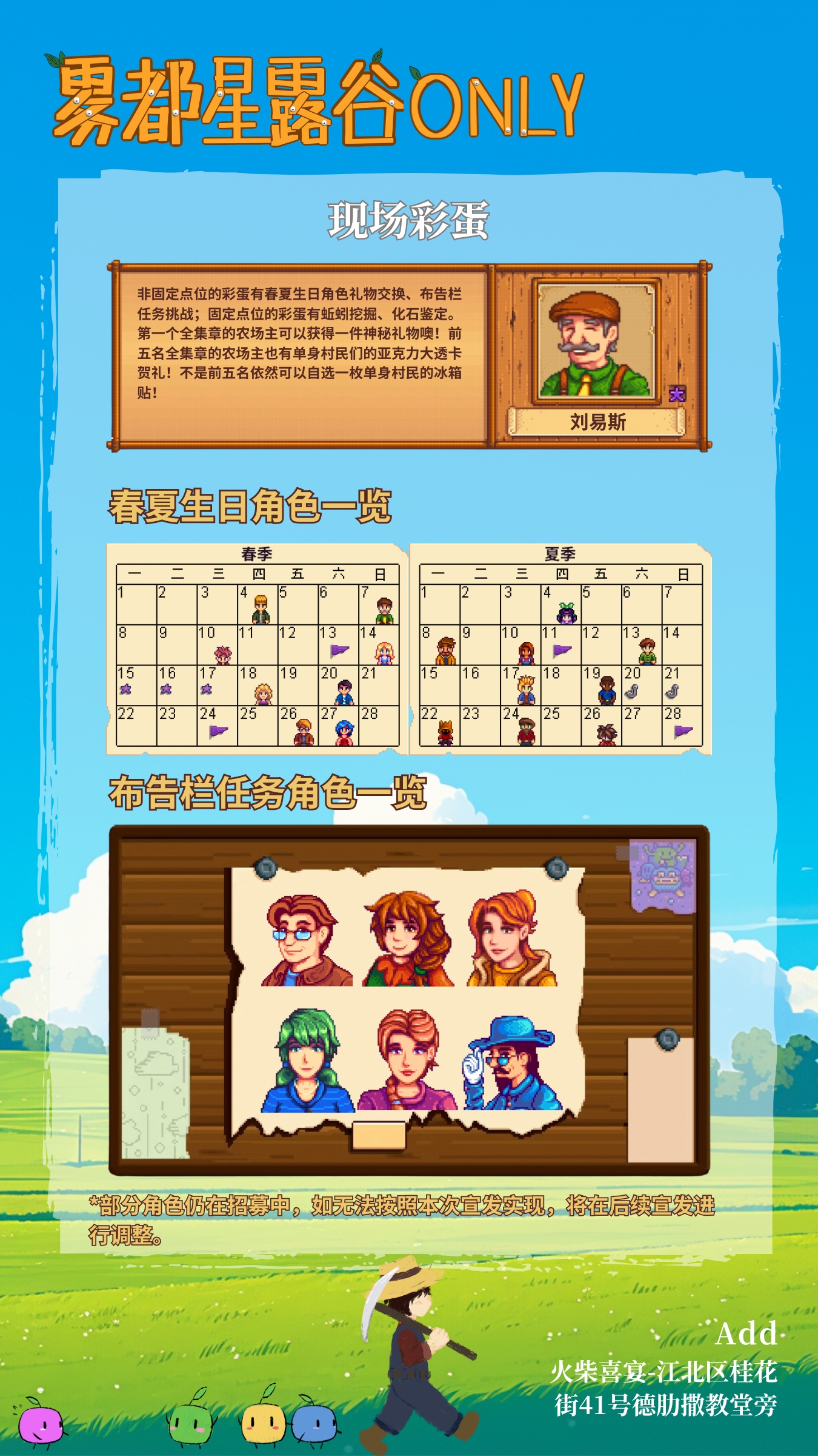 2025年4月19日,我们将筹措一场春夏主题的星露谷only,希望有机会和大家欢聚鹈鹕镇,共度春夏篇章。