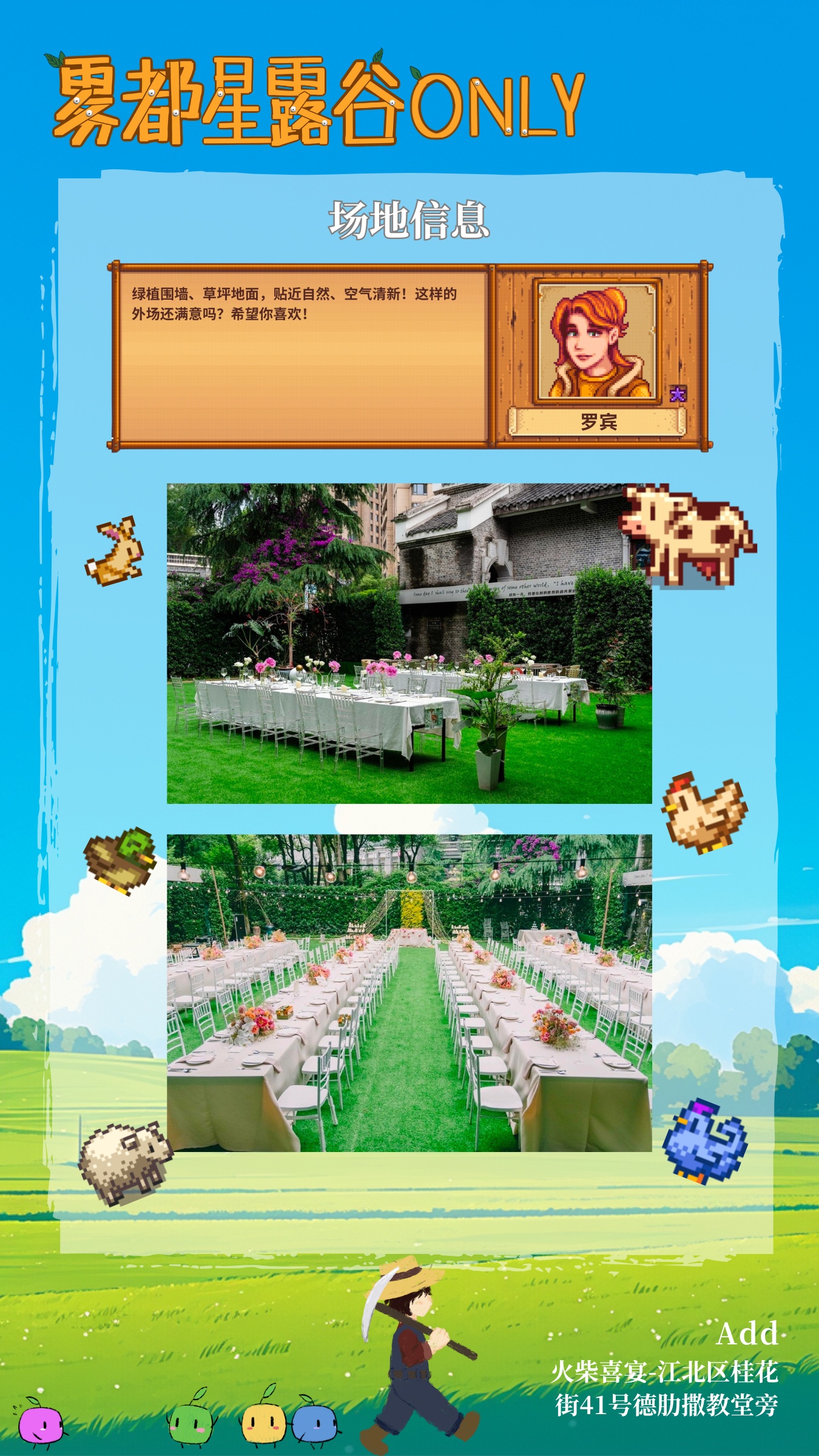 目前场地确定于火柴喜宴,位于江北区桂花街41号德肋撒堂旁(大剧院地铁站3号口步行390米)。